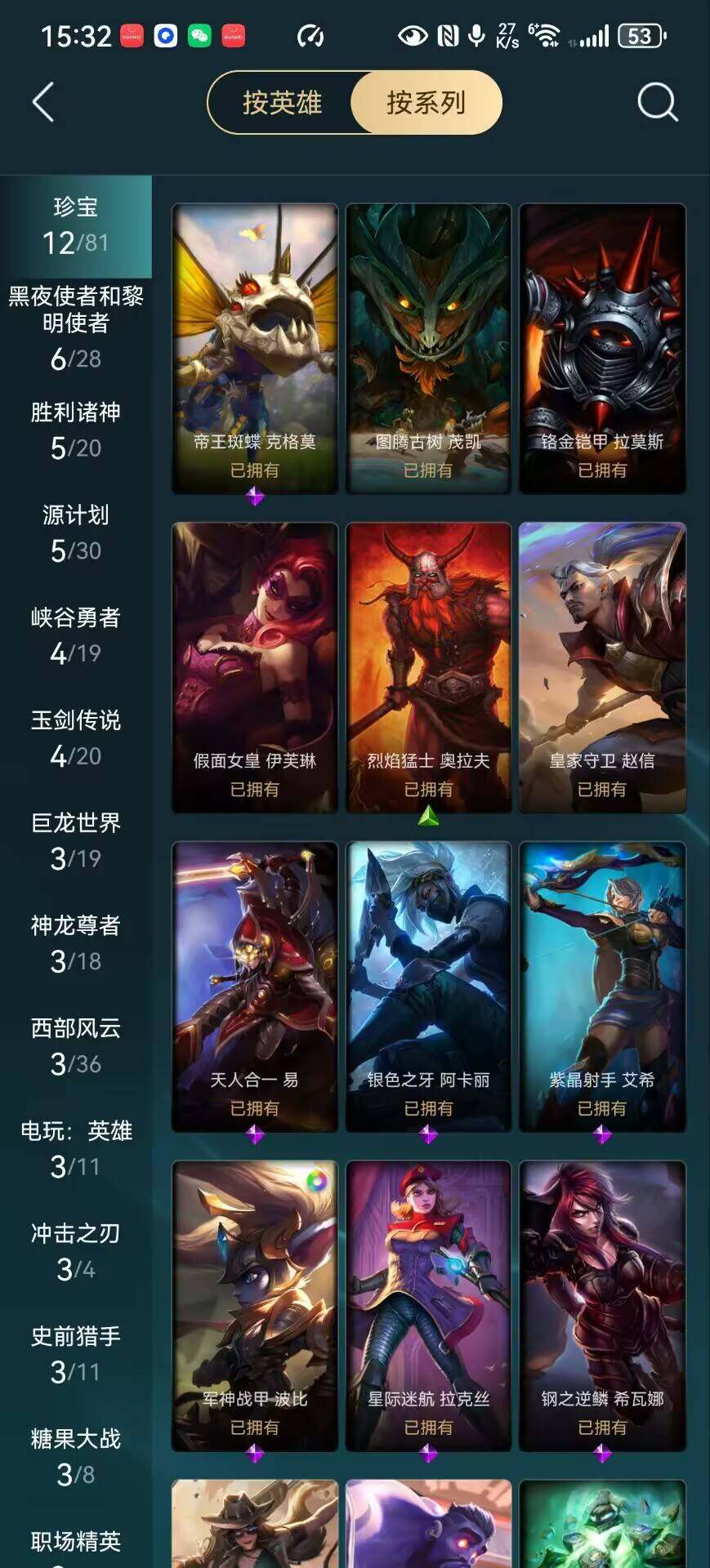 【臻彩皮肤】:巅峰之拳瑟提明镜止水,吕布奉先炫金战神,冠军掠夺者卡兹克凯旋圣装,战斗学院卡特琳娜盛典礼服,星之守护者金克丝黑洞,可爱可爱粉红红布里茨,魔女阿卡丽虚荣,预知之眼亚索不怠,幽梦玫瑰伊莉丝浪漫花蕾