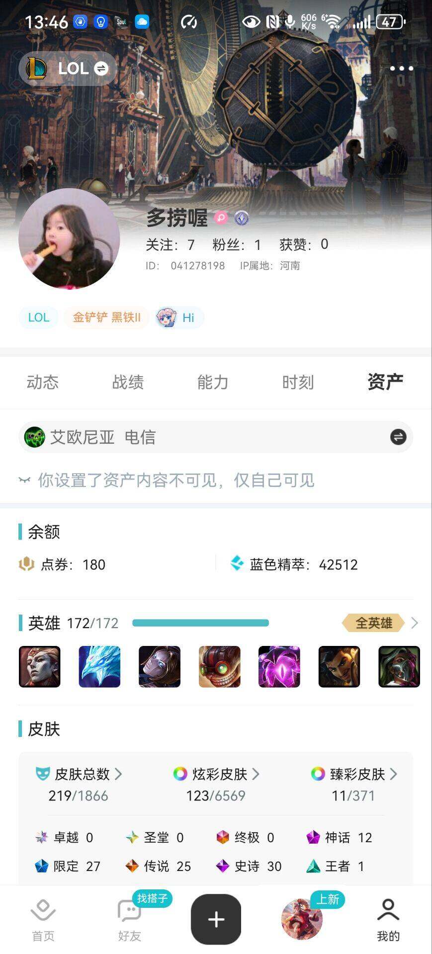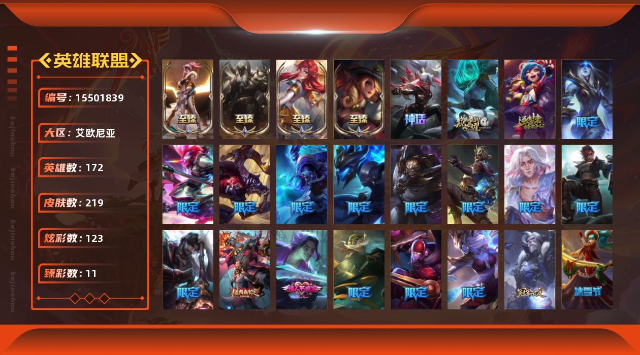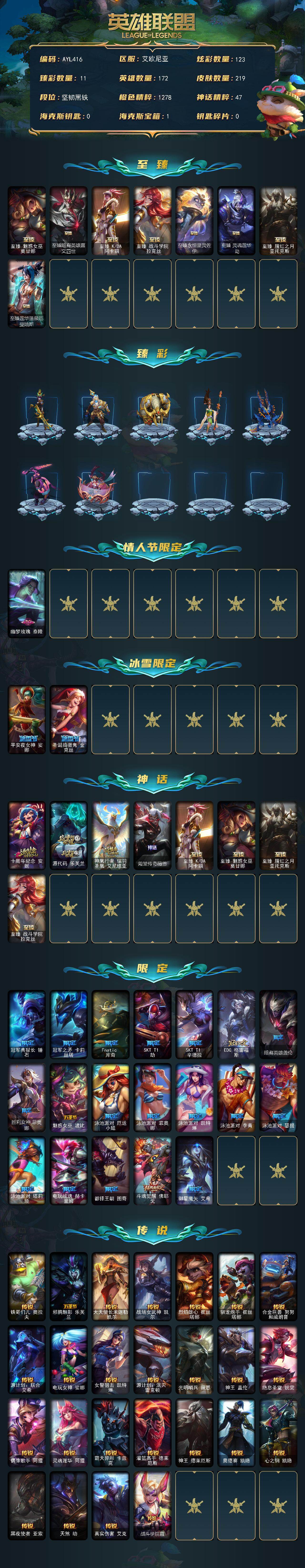 [15501839]【特价出售/店主推荐】未定级段位-172英雄-219皮肤-123炫彩-0终极-12神话-27限定-25传说-30史诗