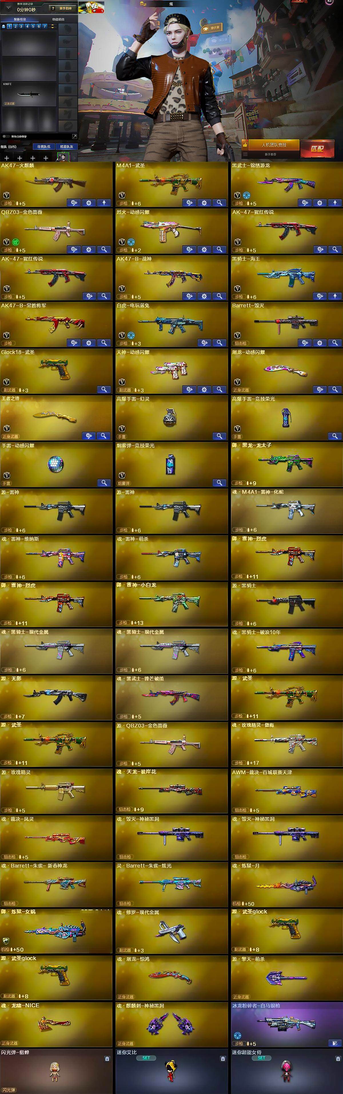 - [12522715]【商品标题】:广西一区-56V-7王者-2炫金 【热门武器】:QBZ03-金色蔷薇,死亡之眼,M4A1-黑骑士,汤姆逊-烈龙*6,加特林-炼狱*5,沙鹰-修罗*2 【王者炫金武器】:炫金骑士,炫金修罗,王者之翼,玫瑰精灵-悦动 【音效卡】:AK47-火麒麟音效卡,Barrett-毁灭音效卡 【稀有皮肤】:雷神-能量核心,雷神-星空,火麒麟-AG战队皮肤,火麒麟-平天大圣,火麒麟-百城,炼狱-星空,毁灭-暗月,毁灭-星空,毁灭-黑大圣皮肤,天龙-能量核心 【角色】:零-水下丽影,瞳,战地猎狐 【人偶武器】:COP-旗袍,迷你裂空之翼,迷你波特博士*3,夺魂,迷你火种,生化手雷-机甲核心 【暴走生化】:死亡之眼,超级对讲机 【挑战大师】:试炼破坏者III,冰龙粉碎者-白马银枪 【英雄级武器】:高爆手雷-竞技荣光*3,烟雾弹-竞技荣光*5,闪光弹-竞技荣光*4,麒麟刺-堕天神,QBZ03-金色蔷薇,M4A1-雷神*2,M4A1-黑骑士,加特林-炼狱*5,汤姆逊-烈龙*6,AK47-火麒麟,AWM-天龙,Barrett-毁灭*2,AWM-裁决*3,AK47-机械迷城,死神-雪域霜狐,M4A1-赤狱骑士,沙鹰-天神,沙鹰-修罗*2,麒麟刺,擎天*2,龙啸,屠龙*2 【特殊枪械】:1黑骑士,6烈龙,5炼狱