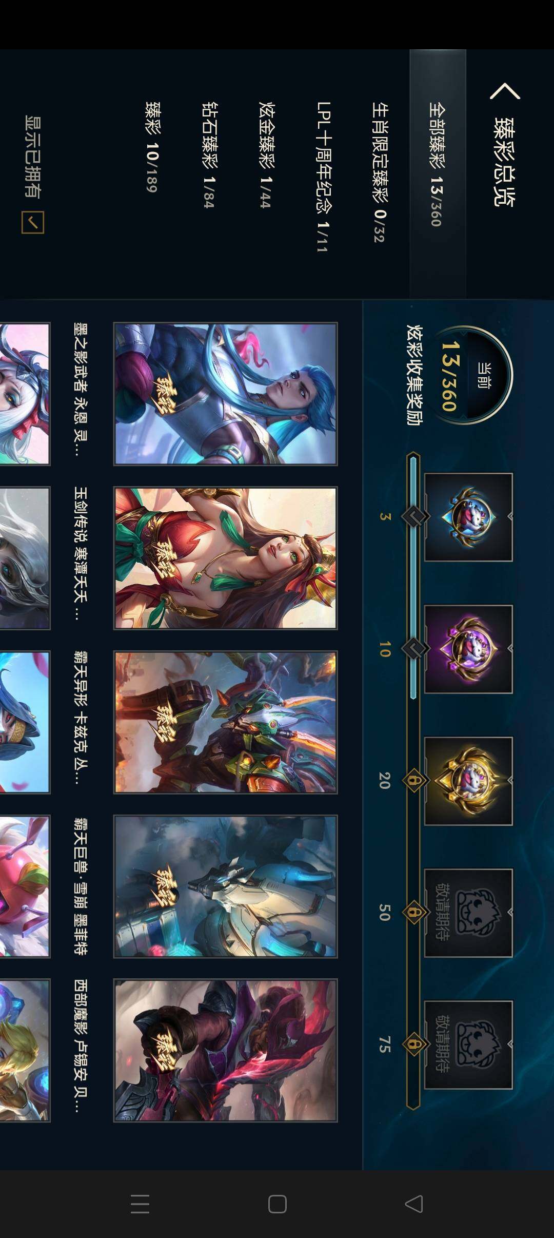 【臻彩皮肤】:无畏骑士瑟庄妮赤子初心,冠军之志瑞兹凯旋圣装,神龙尊者圣龙李青龙腾云起,西部魔影卢锡安贝利尔之怠,玉剑传说无劫胭脂,弹幕天使卡莎炽天使公正,霸天巨兽雪崩墨菲特,玉剑传说寒潭夭夭胭脂,可爱可爱粉红红布里茨,魔女阿卡丽虚荣,净雪之月莫甘娜冬虹,墨之影武者永恩灵墨刻影,霸天异形卡兹克丛林灾厄