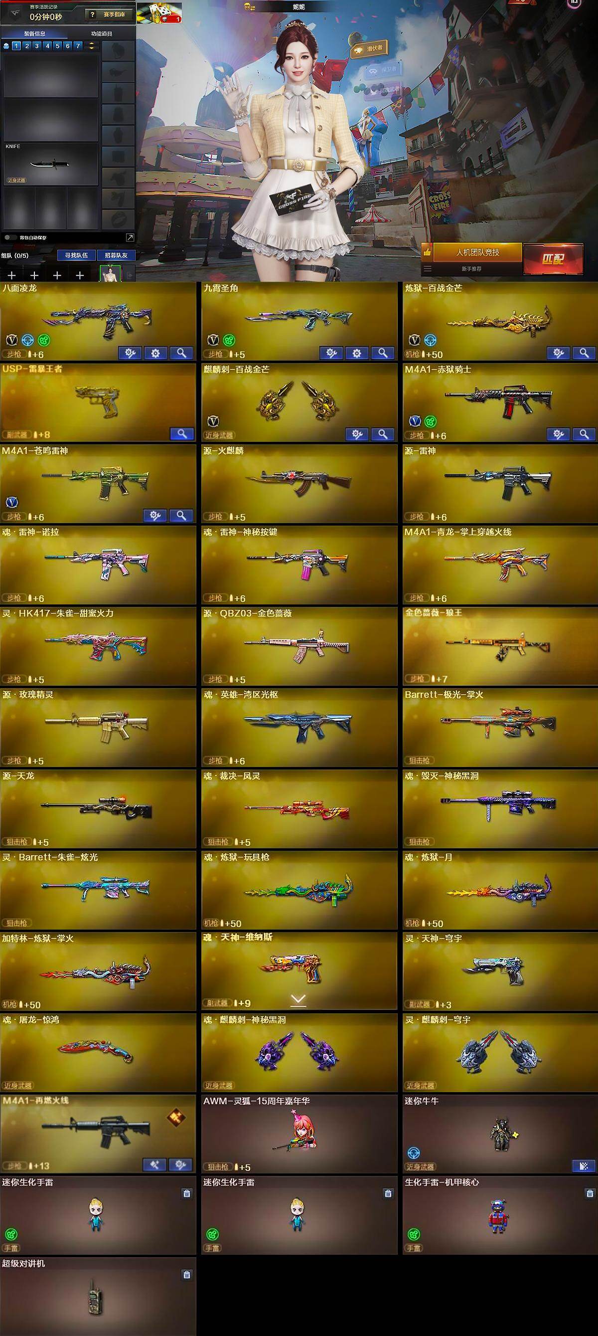 【英雄级武器】:八面凌龙,九霄圣角,炼狱-百战金芒,麒麟刺-百战金芒,M4A1-赤狱骑士,M4A1-苍鸣雷神