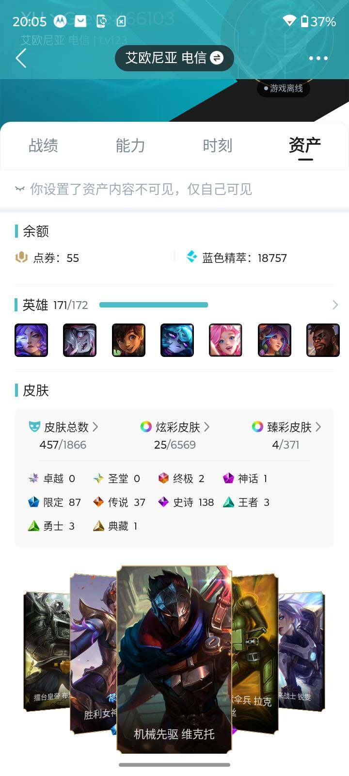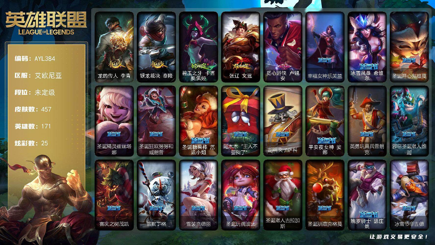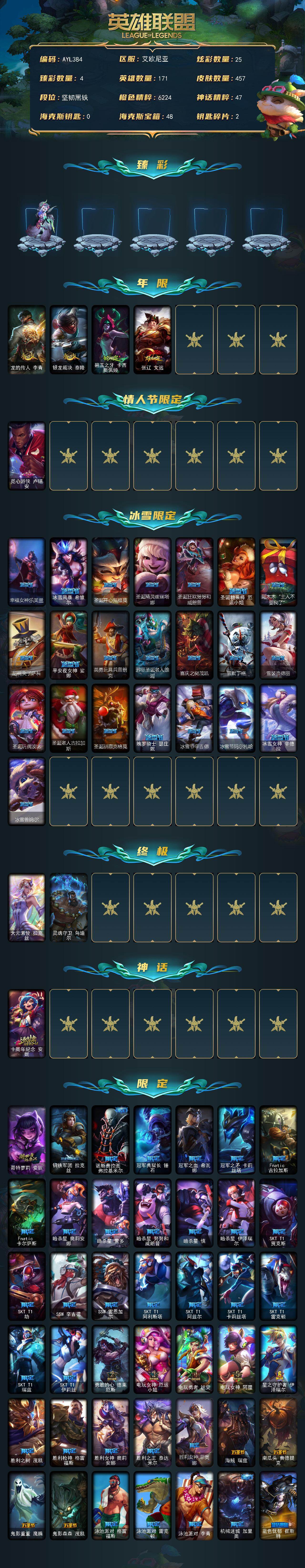 [15510472]未定级段位-171英雄-457皮肤-25炫彩-2终极-1神话-87限定-37传说-138史诗