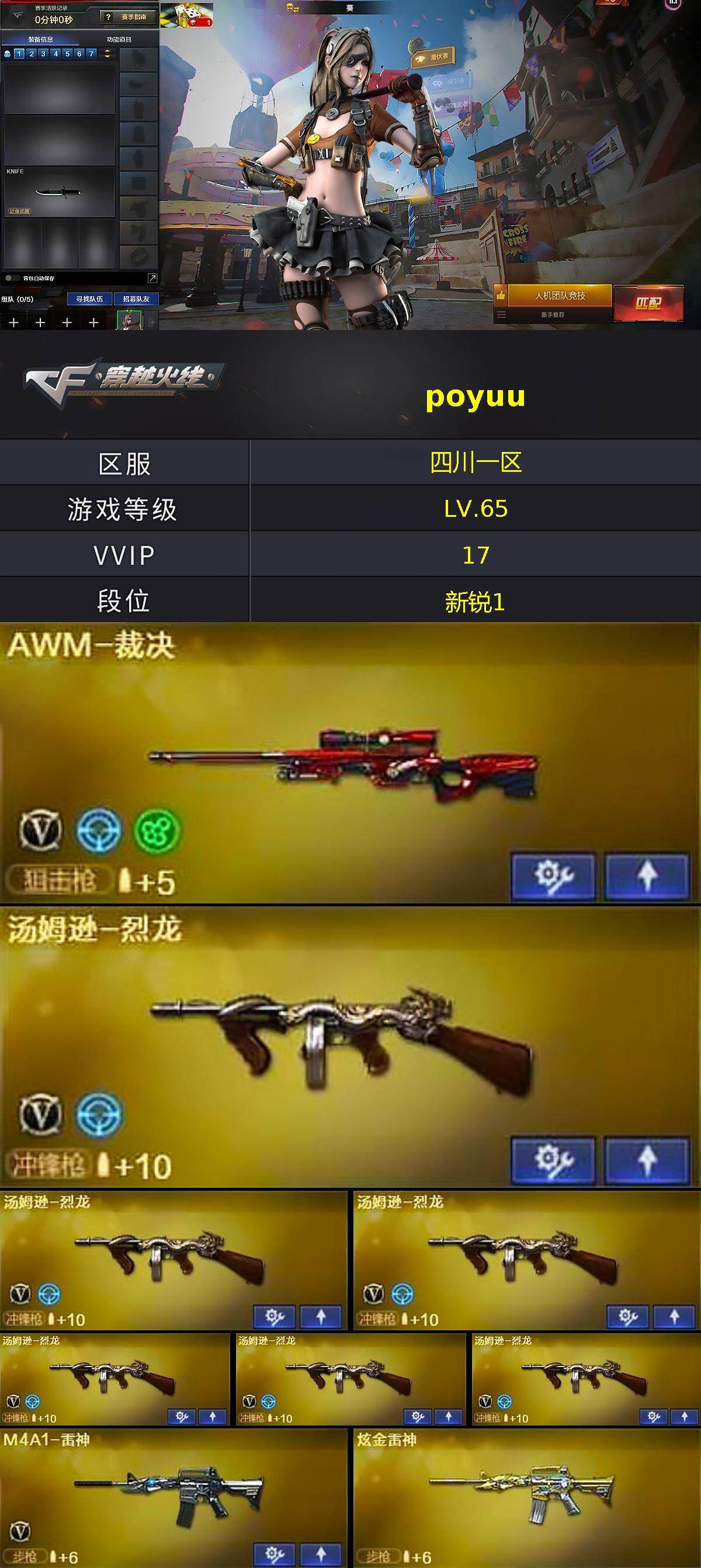[15521918]四川一区-17V-1王者-2炫金 【热门武器】:死亡之眼,M4A1-黑骑士,汤姆逊-烈龙*6,加特林-炼狱 【王者炫金武器】:王者之灵,炫金雷神,炫金毁灭 【皮肤】:毁灭-英雄计划 皮肤 【角色】:葵,曼陀罗-礼服,潘多拉-甜心教官,新娜塔莎 【暴走生化】:死亡之眼 【英雄级武器】:AK47-火麒麟*2,M4A1-雷神,M4A1-黑骑士,AN94-超新星,AWM-天龙,Barrett-毁灭,AWM-裁决,加特林-炼狱,汤姆逊-烈龙*6 【道具】:绿色巨人,灵魂忍者,变异宝贝,迷雾幽灵,夺命之镰,防化服*2,防弹头盔*3,防弹衣*5,C4工具钳*3,手雷包*3 【特殊枪械】:1黑骑士,6烈龙,1炼狱