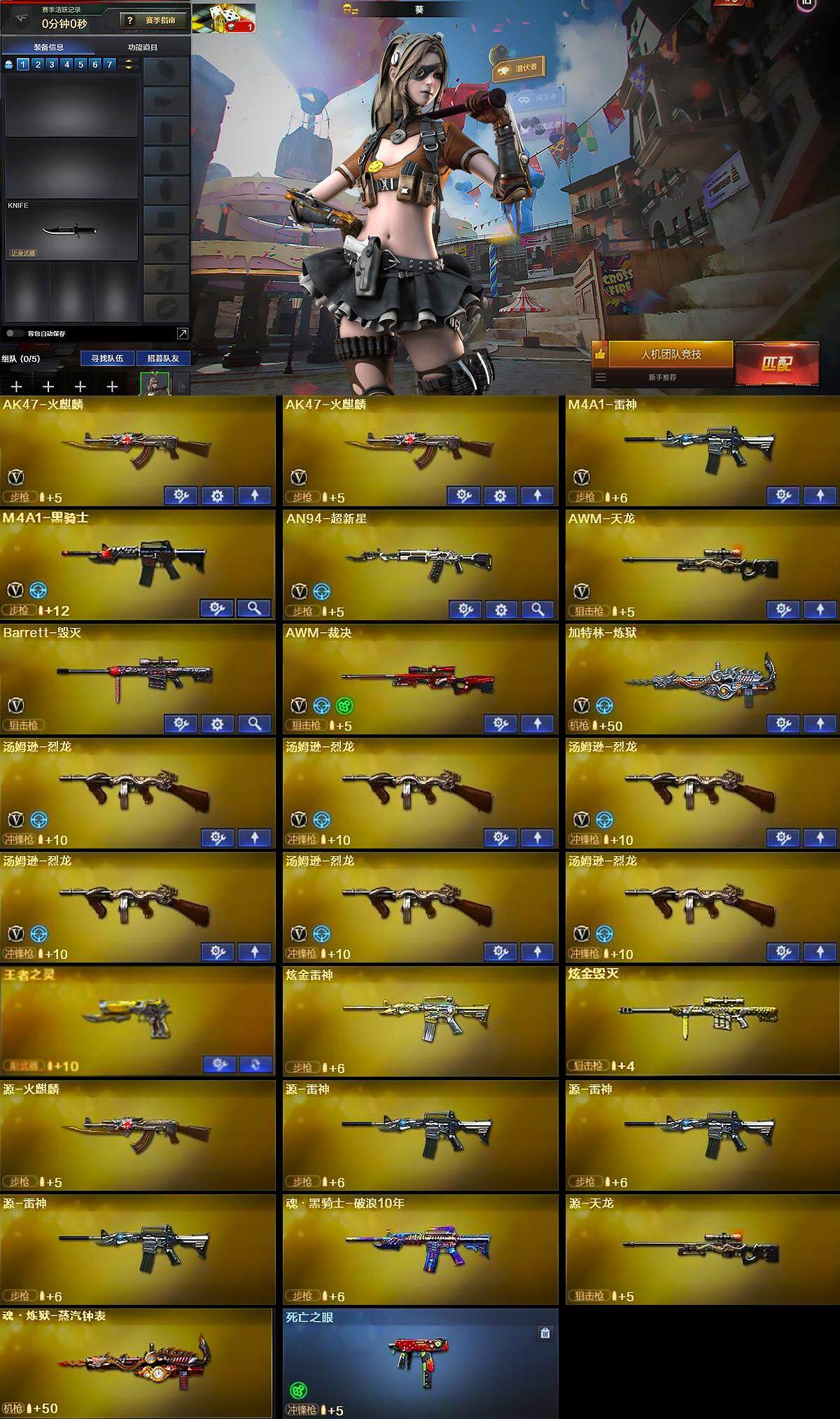 【英雄级武器】:AK47-火麒麟*2,M4A1-雷神,M4A1-黑骑士,AN94-超新星,AWM-天龙,Barrett-毁灭,AWM-裁决,加特林-炼狱,汤姆逊-烈龙*6