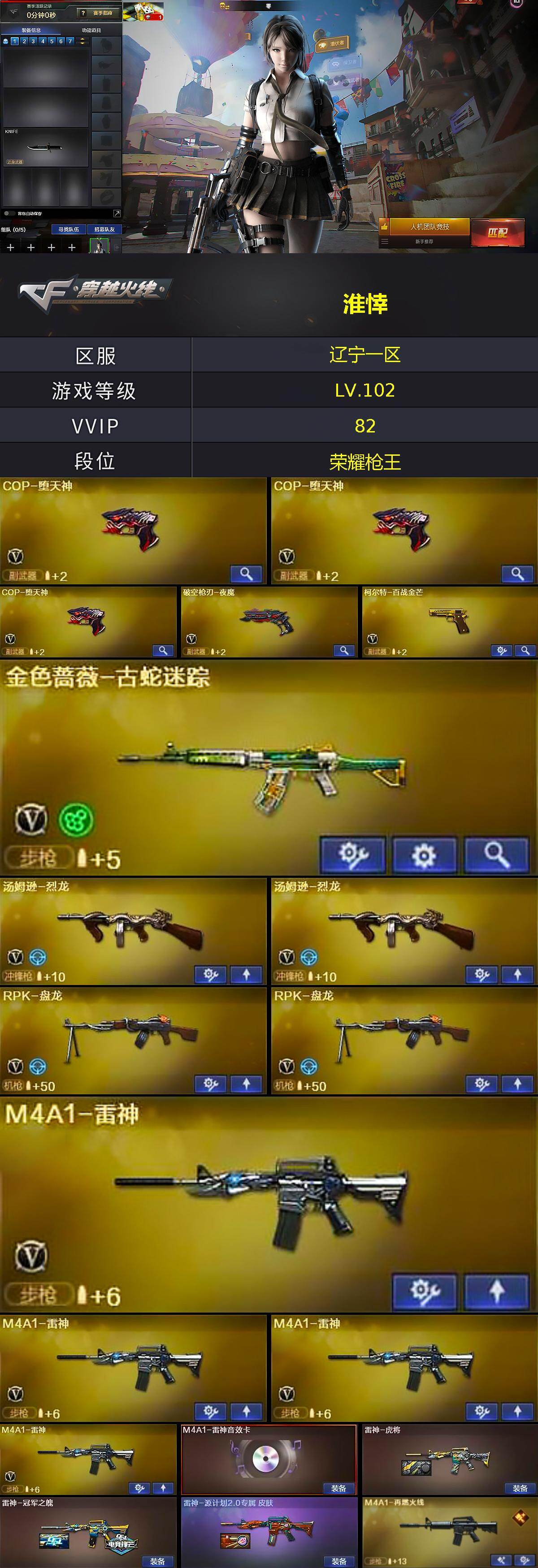 - [14356374]南方大区-126V-9王者-3炫金 【热门武器】:QBZ03-金色蔷薇,Scar Light-白虎,HK417-朱雀,死亡之眼*4,荣耀世冠-雷神,Kar98K-星神,汤姆逊-烈龙*7,RPK-盘龙*4,加特林-炼狱,斯泰尔-蝴蝶,USP-雷暴,COP-堕天神,沙鹰-修罗*3,金刚伞 【王者炫金武器】:王者之城,王者之戮,王者之翼,炫金武士,炫金天龙,炫金修罗 【音效卡】:AK47-火麒麟音效卡,M4A1-雷神音效卡,Barrett-毁灭音效卡,炼狱-百战金芒-庆典舞曲音效卡 【皮肤】:雷神-能量核心,雷神-传奇N9,M4A1-再燃火线,火麒麟-雷神,火麒麟-华夏之心,火麒麟-轻羽皮肤,火麒麟-战神关羽,火麒麟-平天大圣,毁灭耀金皮肤,毁灭-星空,毁灭-英雄计划 皮肤,黑龙-能量核心,无影-能量核心,战神-紫绶金章皮肤*3,战神-流金岁月皮肤*4,AWM-天龙-传奇白鲨*2,极光-能量核心*2,修罗-能量核心*2,天神-暗月,轻型军用手斧-再燃火线 【角色】:零,葵,樱,魅影,炫,春,迷迭香,暗夜-X,风暴女,灵狐者-职业经理,潘多拉-X,潜龙队-X,青霞仙子,蜀雪,影武者-X 【人偶武器】:斯泰尔-蝴蝶,巴雷特-零-水下丽影,COP-旗袍,迷你深渊冰龙*2,迷你生化手雷,深渊终结者手雷,闪光弹-小乔,迷你艾比,迷你巨石泰坦-魔花研究所 【暴走生化】:死亡之眼*4 【挑战大师】:神圣爆裂者III*2,激光毁灭者III,KAC-圣炎切割者III,神圣爆裂者-末日III,阐释者III 【英雄级武器】:AK47-火麒麟*2,M4A1-黑龙,M4A1-雷神*4,AK47-无影,AK47-黑武士,AK12-天启,M4A1-龙血,AK47-雷暴,M4A1-堕天神,HK417-朱雀,Scar Light-白虎,M4A1-玫瑰精灵,QBZ03-金色蔷薇,M4A1-猎神,王者之心-觉醒版,AK-47-猩红传说*6,AK47-B-战神,黑骑士-海王,荣耀世冠-雷神,黑武士-CF网剧冠军,AWM-天龙,Barrett-毁灭,Barrett-极光*2,AWM-裁决,Kar98K-星神,王者之怒-觉醒版,王者幻神-觉醒版,RPK-盘龙*4,加特林-炼狱,炼狱-百战金芒,汤姆逊-烈龙*7,AA-12-雷霆,沙鹰-修罗*3,沙鹰-天神,USP-雷暴,COP-堕天神,王者之灵-觉醒版,天神-CF