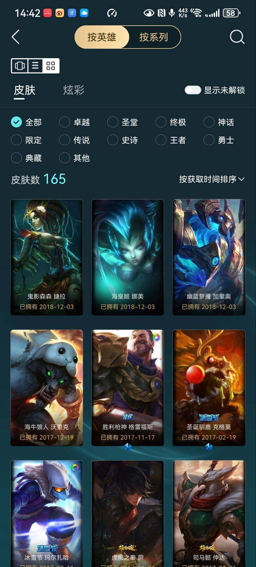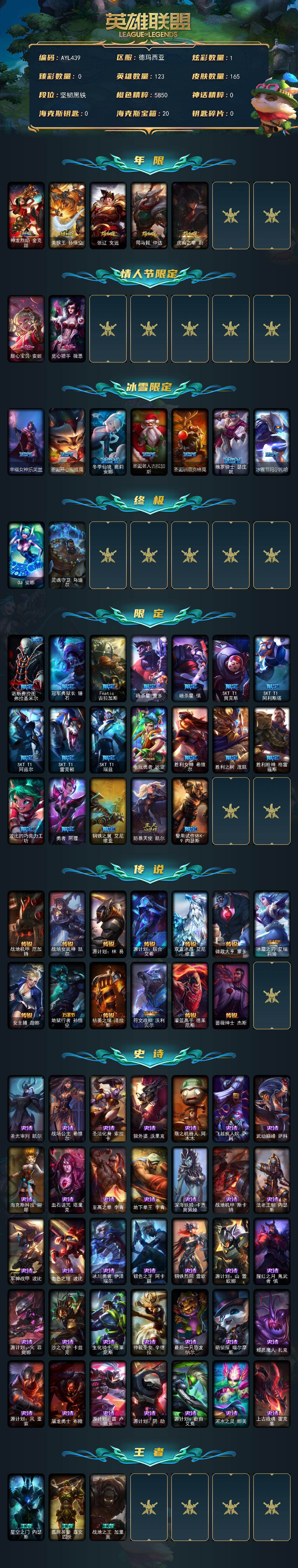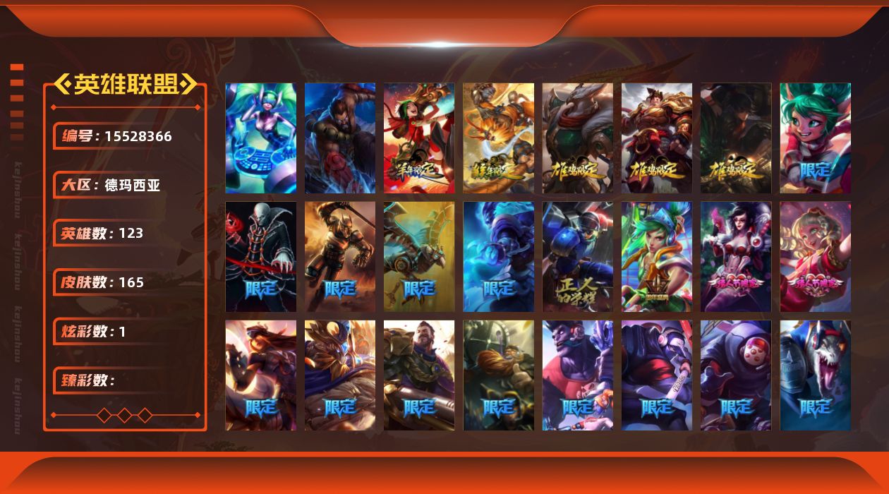[15528366]可二次【特价出售/店主推荐】未定级段位-123英雄-165皮肤-1炫彩-2终极-0神话-33限定-13传说-35史诗