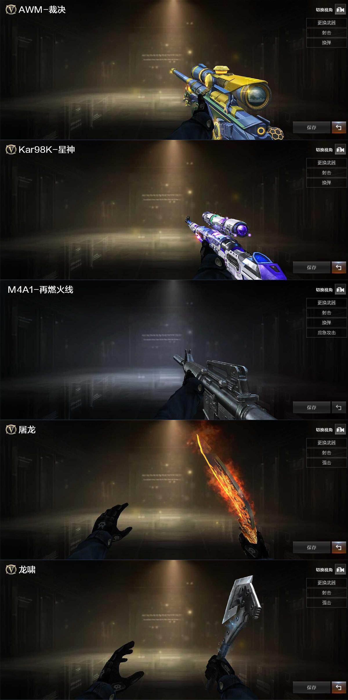 【皮肤】:裁决-运输船 皮肤,星神-璀璨皮肤,M4A1-再燃火线,屠龙-星火燎原,屠龙-惊鸿 皮肤,轻型军用手斧-再燃火线