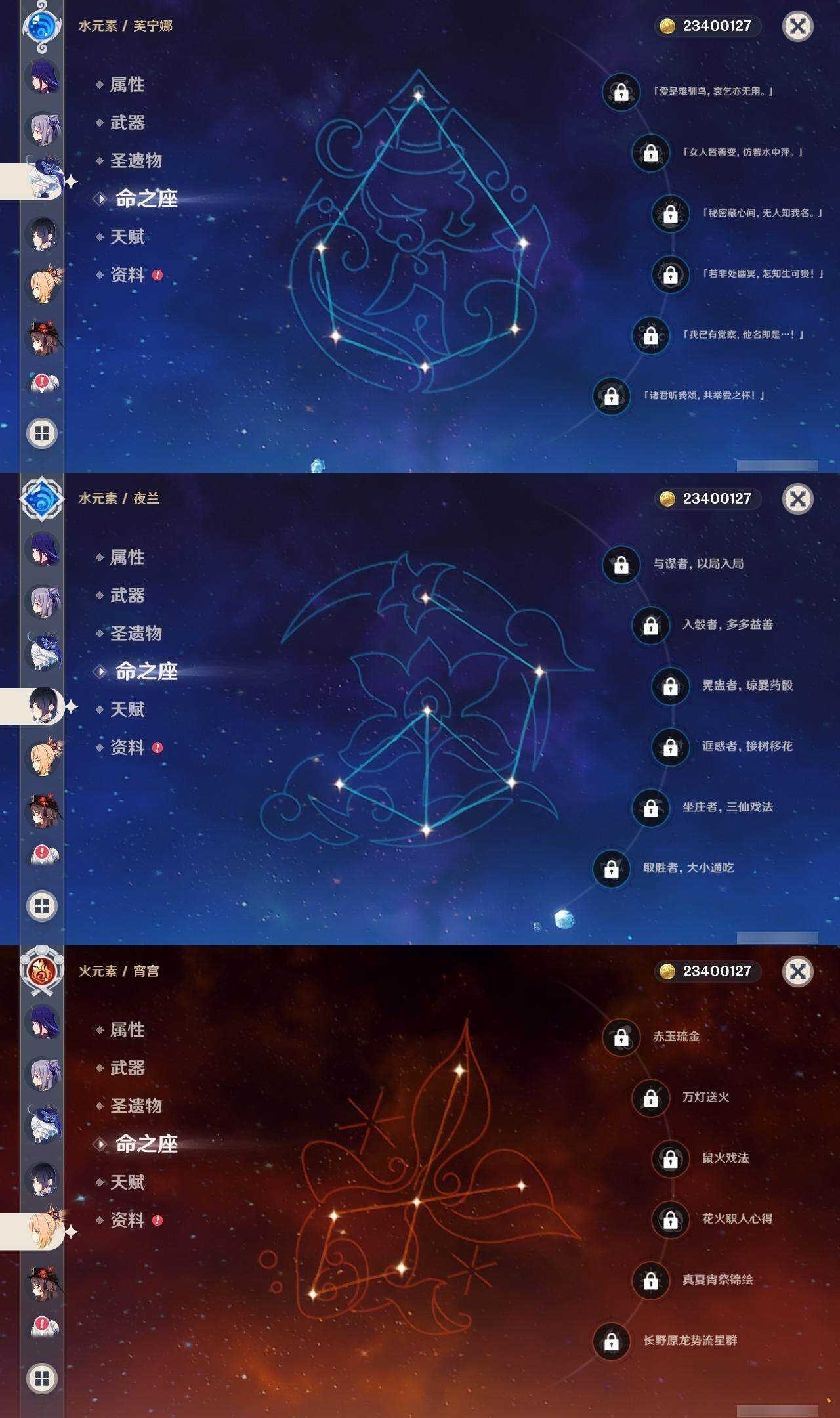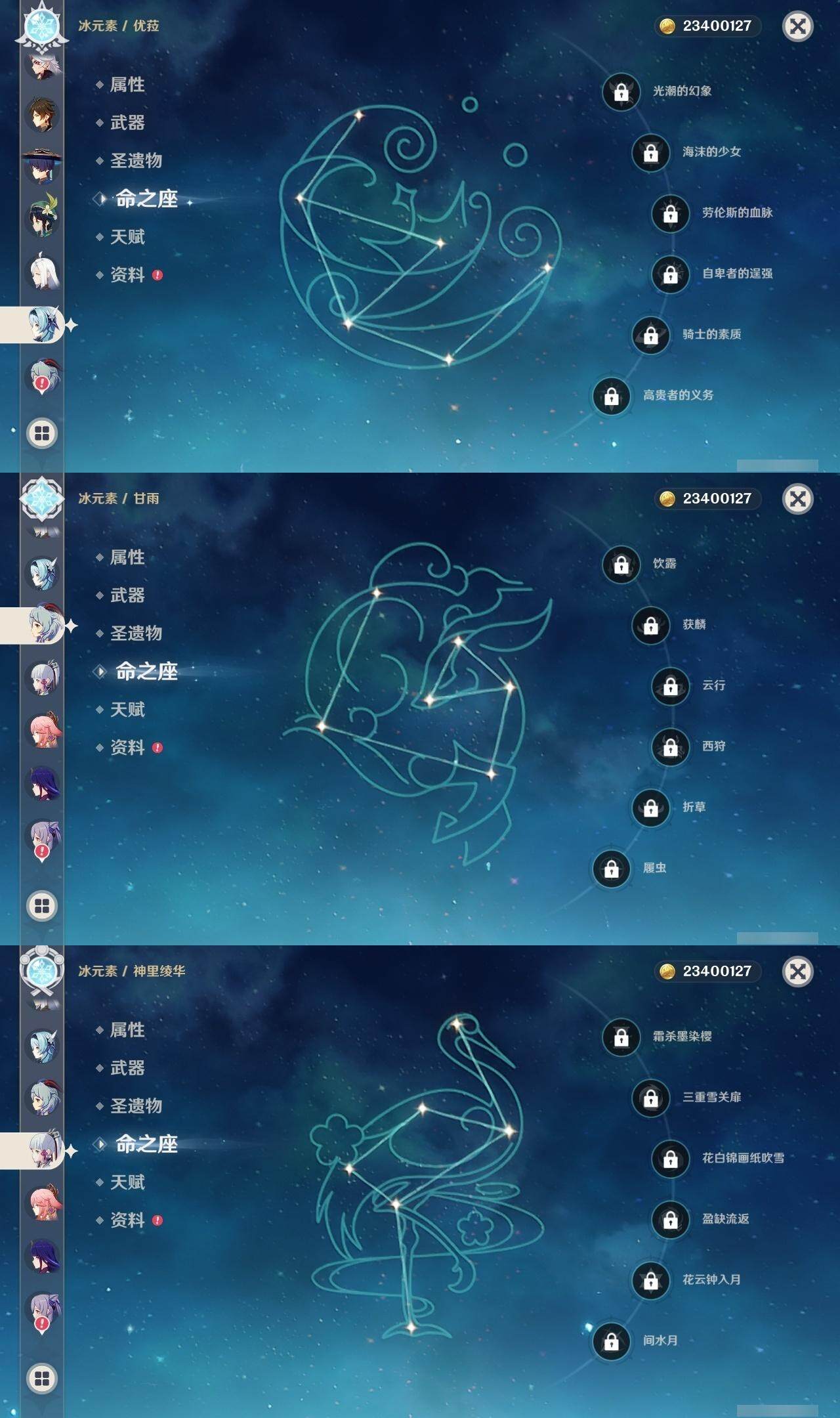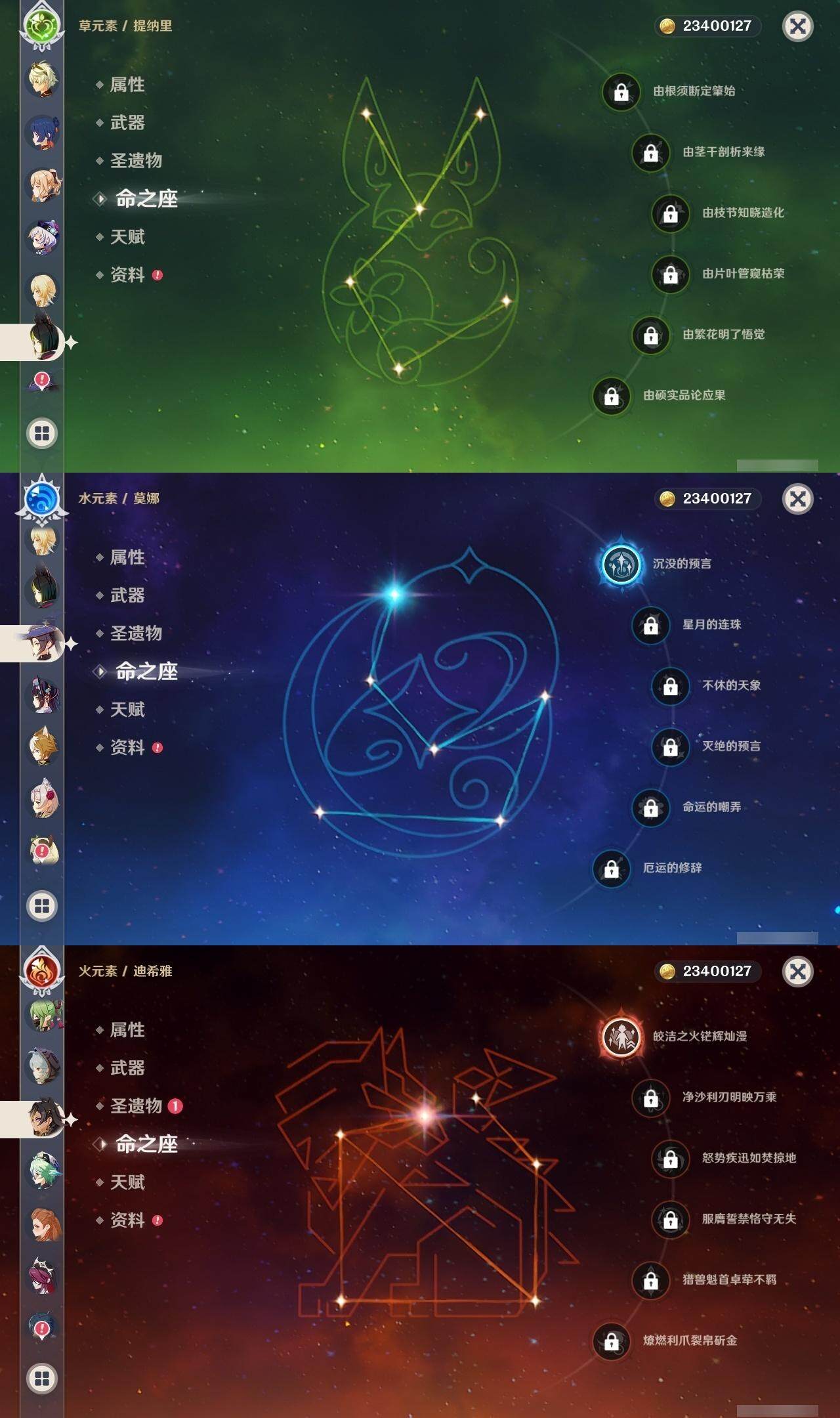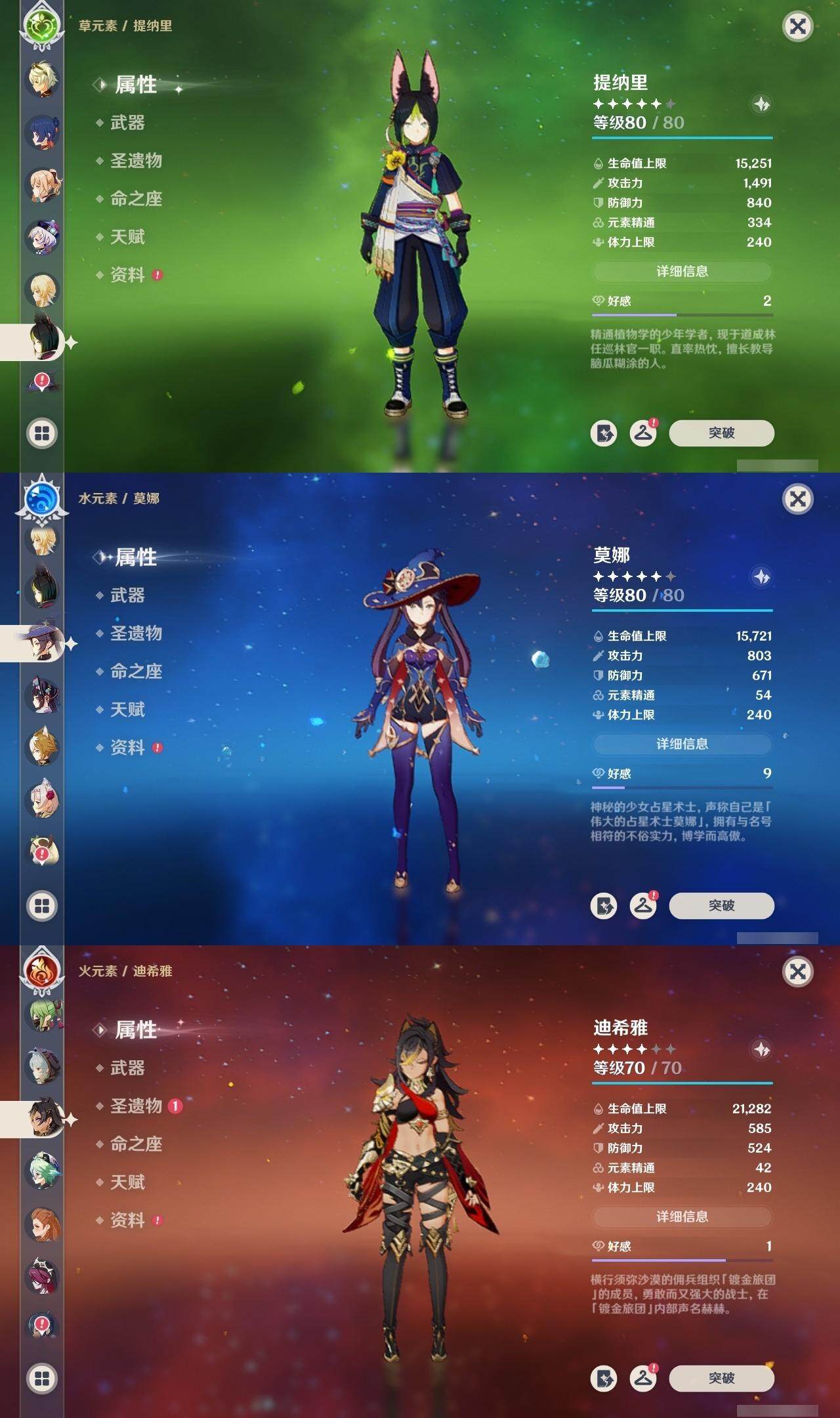 0命芙宁娜,1命迪希雅,0命流浪者,0命纳西妲,0命妮露,0命提纳里,0命夜兰,0命八重神子,0命申鹤,0命荒泷一斗,0命优菈,0命雷电将军,0命枫原万叶,0命神里绫华,0命钟离,0命胡桃,0命甘雨,0命宵宫,0命温迪,0命珊瑚宫心海,2命刻晴,4命七七,2命琴,1命莫娜,精1千夜浮梦,精1若水,精1波乱月白经津,精1息灾,精1赤角石溃杵,精1终末嗟叹之诗,精1护摩之杖,精1磐岩结绿,精1和璞鸢,精1天空之脊,精1贯虹之槊,精1天空之刃,精1天空之卷,精1狼的末路,精1天空之傲