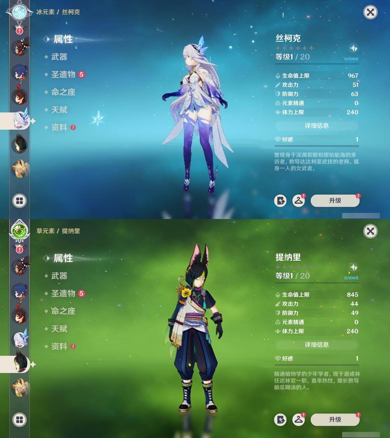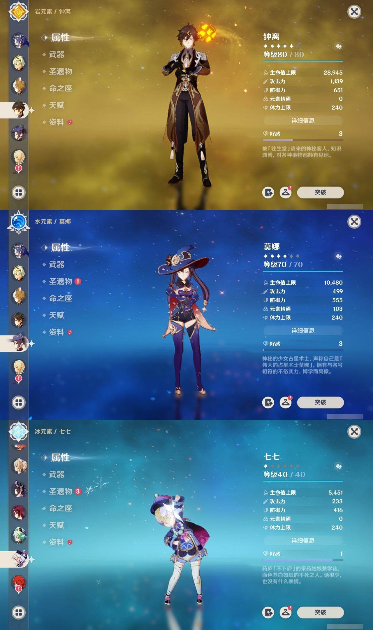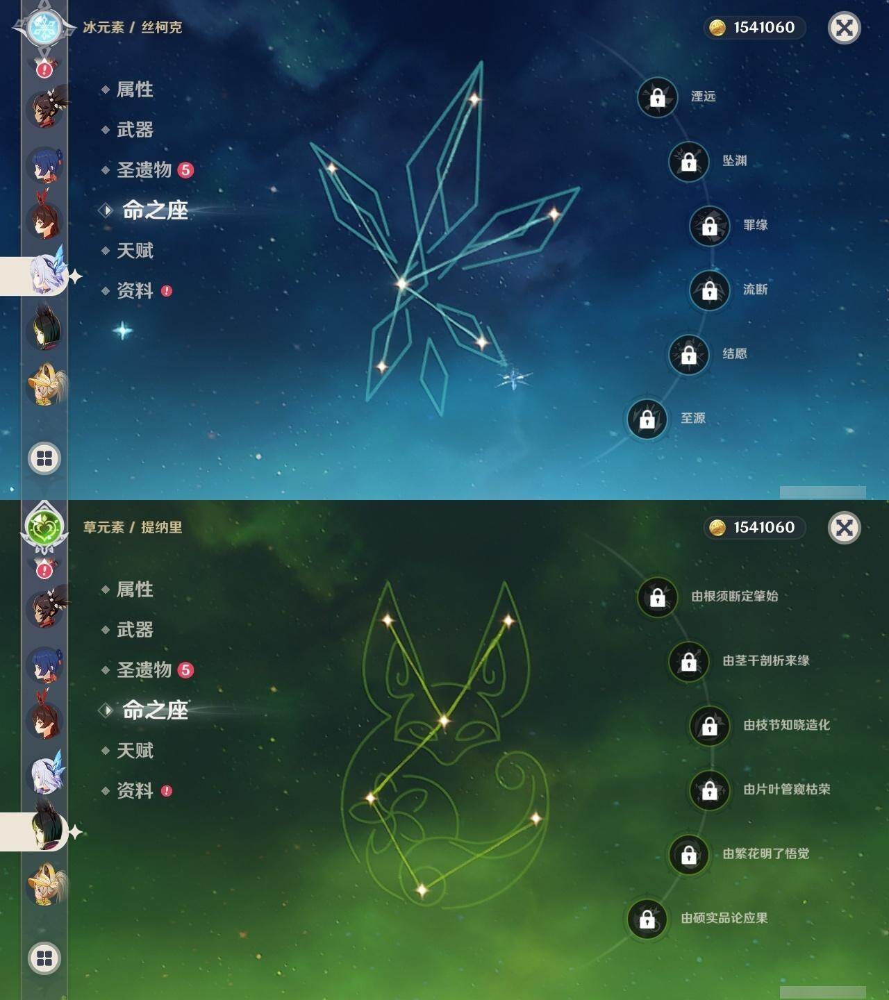 0命迪希雅,满命纳西妲,0命提纳里,0命夜兰,2命荒泷一斗,0命枫原万叶,0命钟离,0命宵宫,1命刻晴,3命七七,0命琴,0命莫娜,1命迪卢克,0命丝柯克,精1千夜浮梦,精2圣显之钥,精1息灾,精1赤角石溃杵,精1苍古自由之誓,精1四风原典,精1天空之翼,精1天空之刃,精1尘世之锁,精1风鹰剑,精1狼的末路