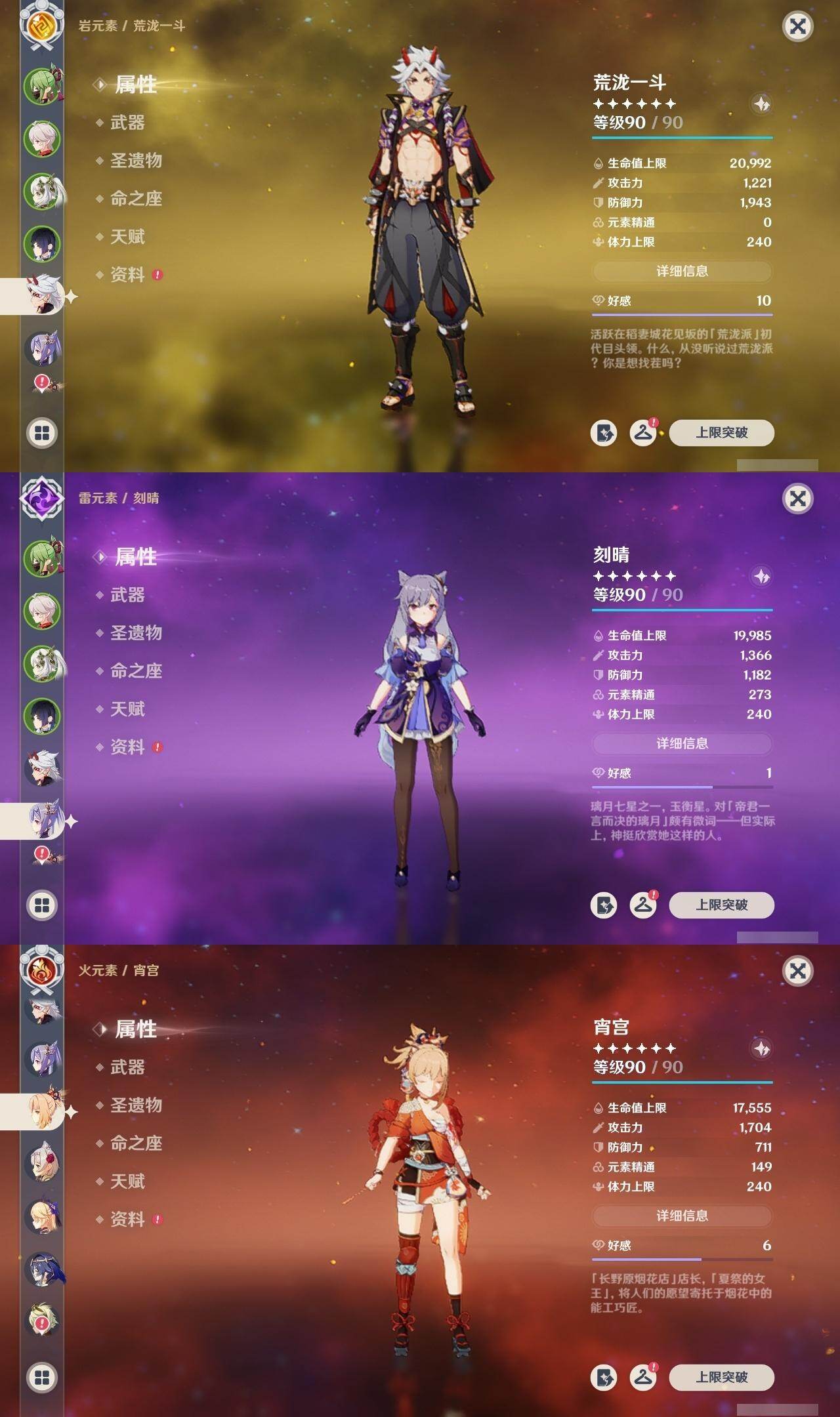 枫原万叶,荒泷一斗,刻晴,宵宫,钟离,莫娜,七七,迪卢克,琴