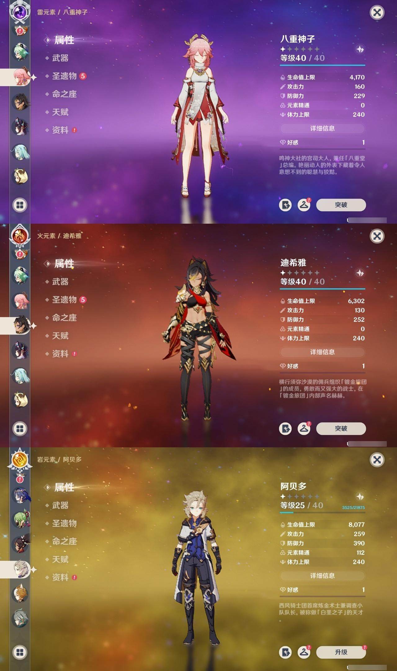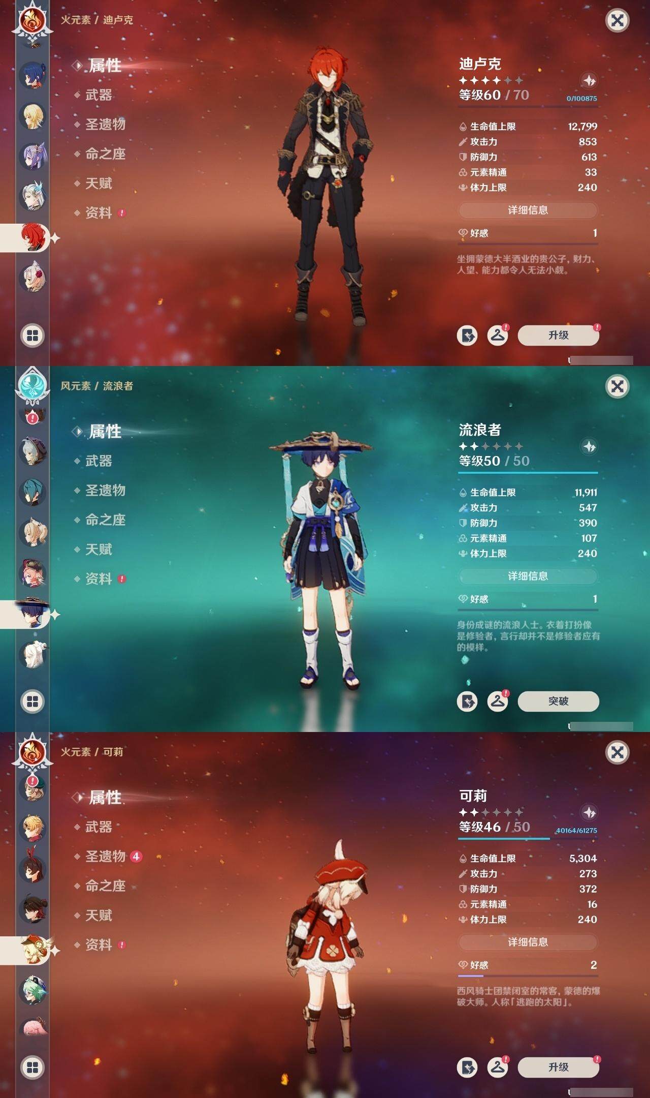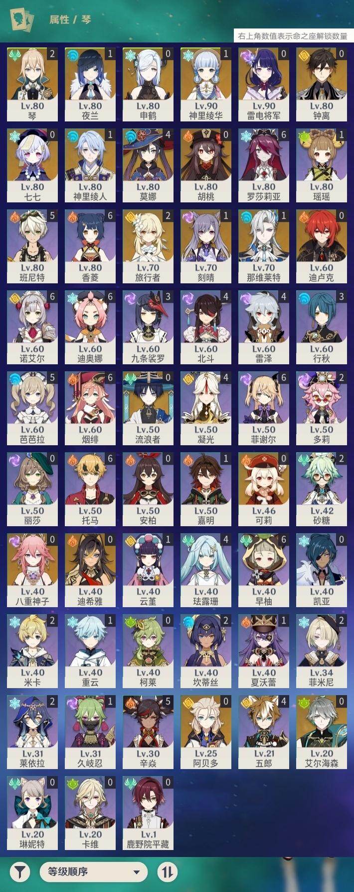 [15535071]56级/44黄/女主/19个五星角色/13个五星武器