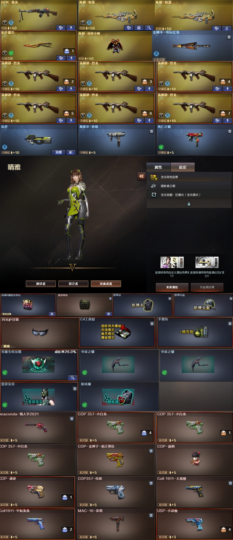 [15537510]东部64V 幻神 裁决 白虎蓝兔 QBZ (6烈+炽忙牒刃+恶棍死亡之眼 1盘2炼+炼狱小刚 晴雅生化背包捕食者之眼 生化小满配) 王者之心之武之怒 黑骑士QBZ雷神三种音效卡 王者迷迭香闭月羞花可拓四防 COP旗袍 炫彩背包*2