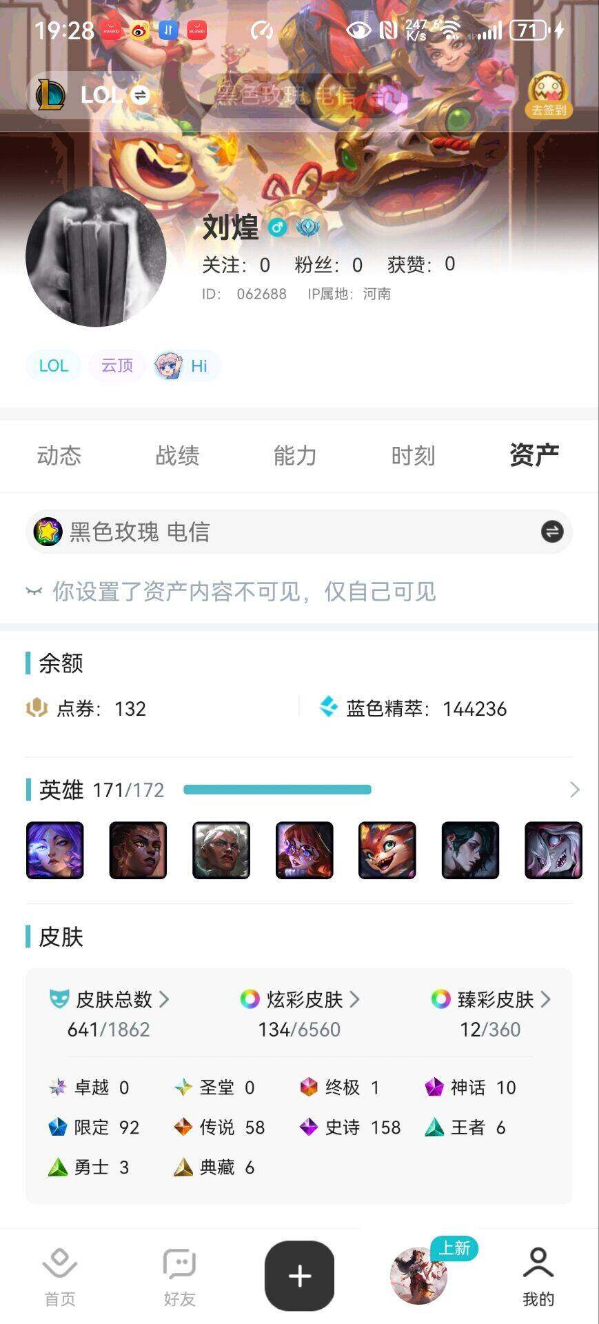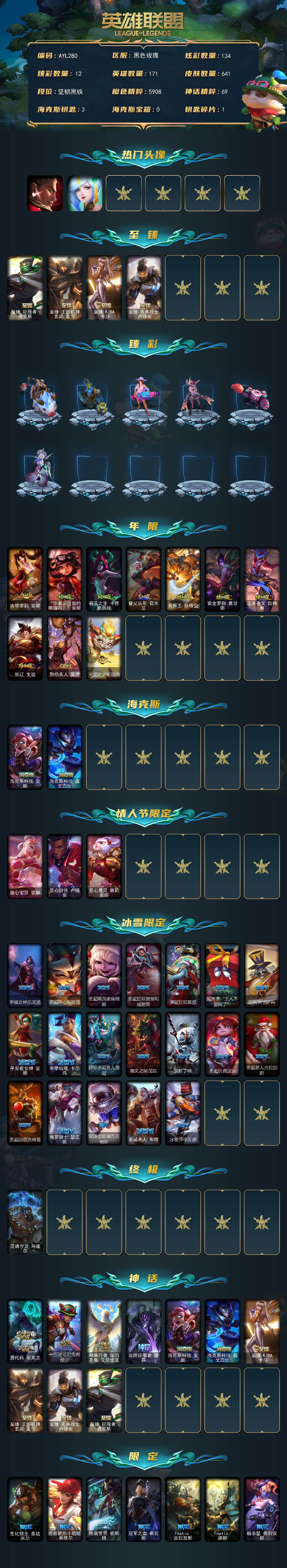 [15540438]可二次【特价出售/店主推荐】未定级段位-171英雄-641皮肤-134炫彩-1终极-10神话-92限定-58传说-158史诗