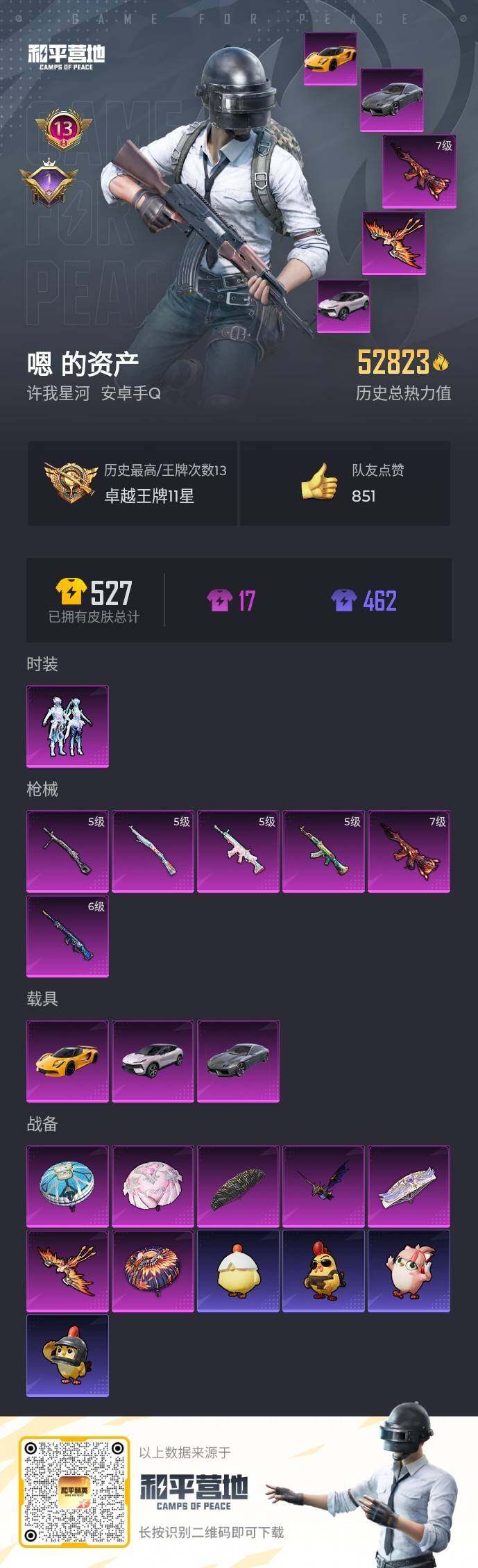 - PX_2097351- 安卓手Q-10王牌印记-12粉装-11特效枪-2载具-58931热力值-120套装-158枪皮-1卓越印记-0传奇印记 【12粉装】,梦幻火箭,初号机款机体服,宝贝奶油派,新星烈龙,绯穹魔姬,旋转彩虹,冰霜白皇,炙焰红王,彩虹鹿灵,山涧鹿灵,绚金战神,星之彼岸 【11特效枪】AKM-炫紫旋律-5级 SCAR-L-童趣迷兔-5级 SCAR-L-青春物语-1级 M416-五爪金