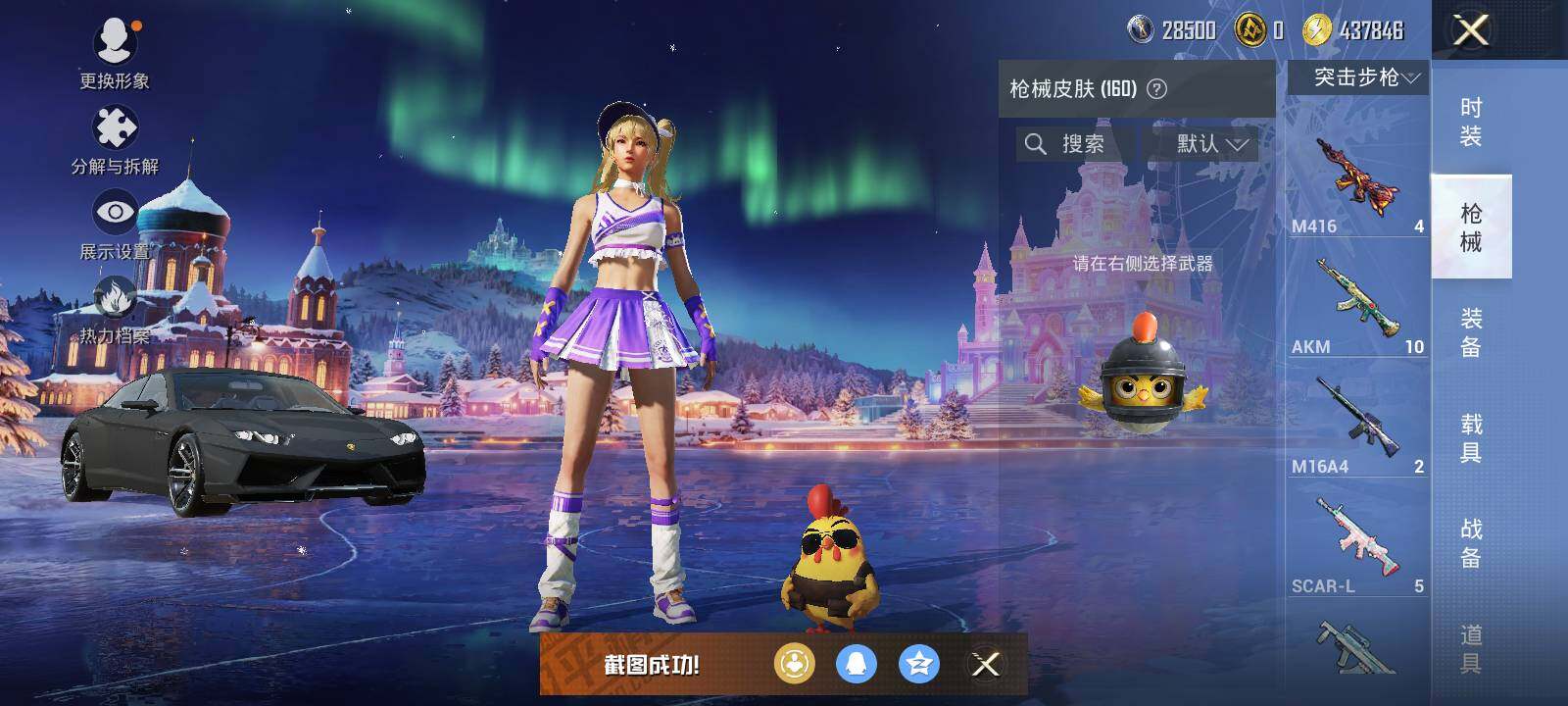 【粉色枪皮】:AKM-绿萝繁花,SCAR-L-锦绣绵绵,M416-风花雪月,Kar98K-巳巳如意,SLR-暗夜玫瑰,DP-28-豹影疾电