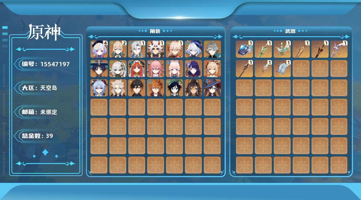 [15547197]60级/39黄/男主/21个五星角色/9个五星武器