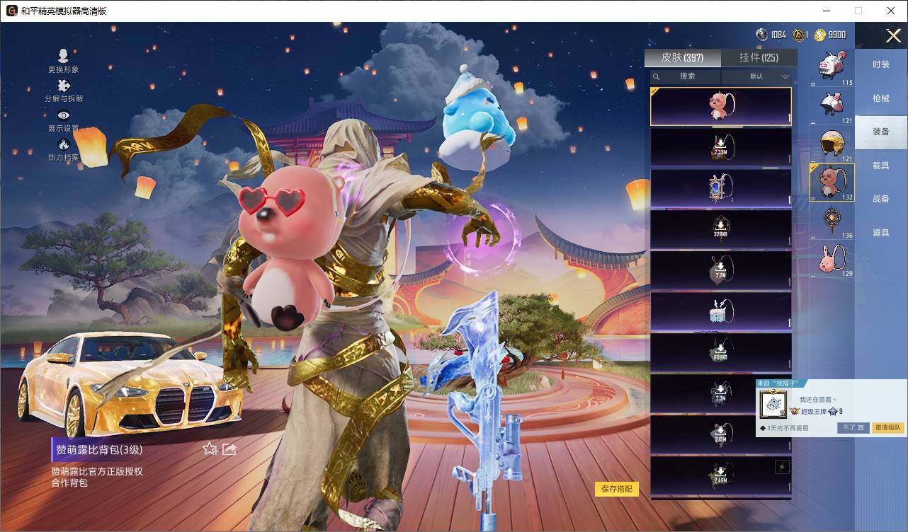 AKM-奇异狩猎者,M416-仓鼠灰灰,GROZA-林间仙鹿,M762-奇异狩猎者,M762-瑞龙福将,汤姆逊-林间仙鹿,Kar98K-古堡领主,M24-奇异狩猎者,S686-奇异狩猎者,M249-古堡领主