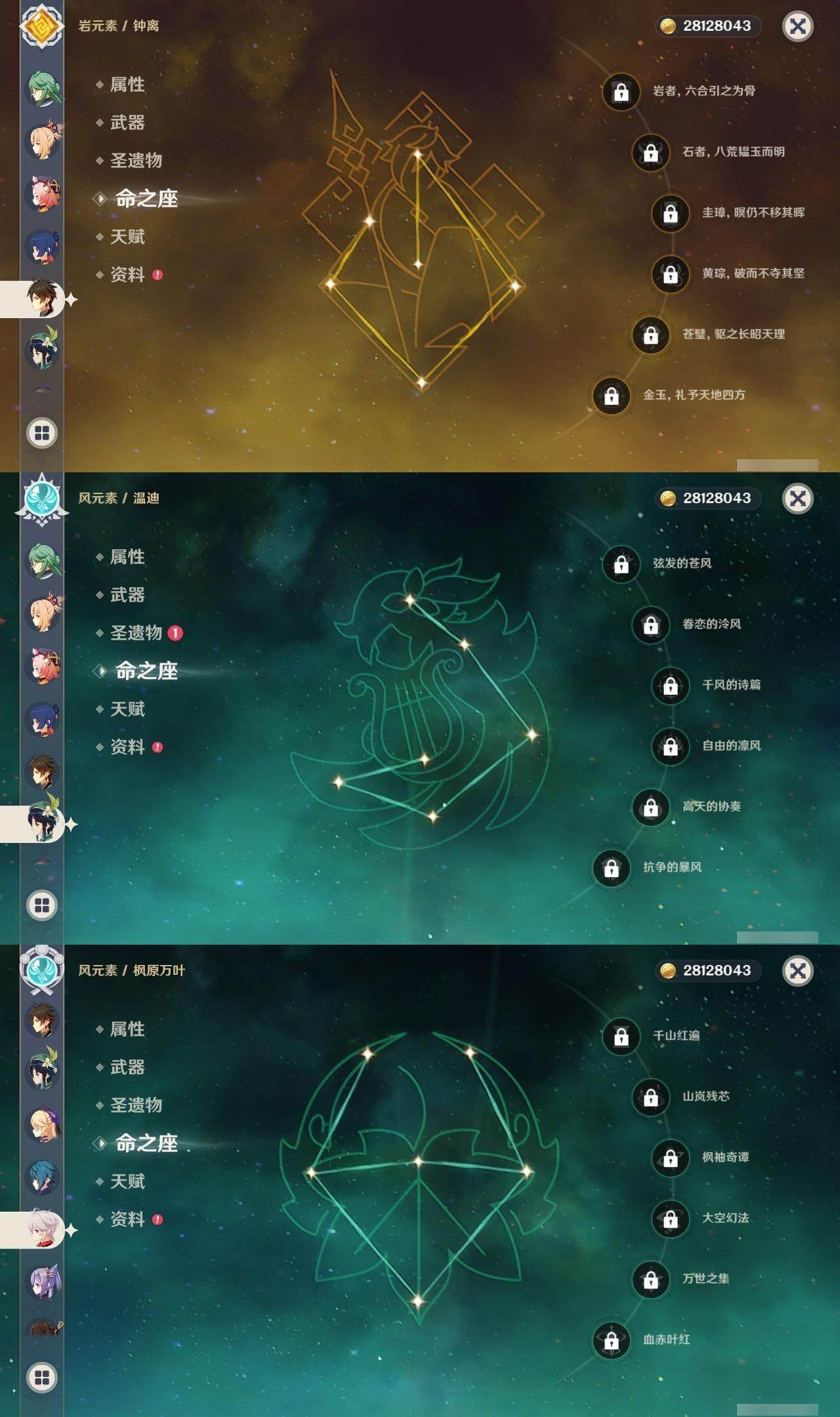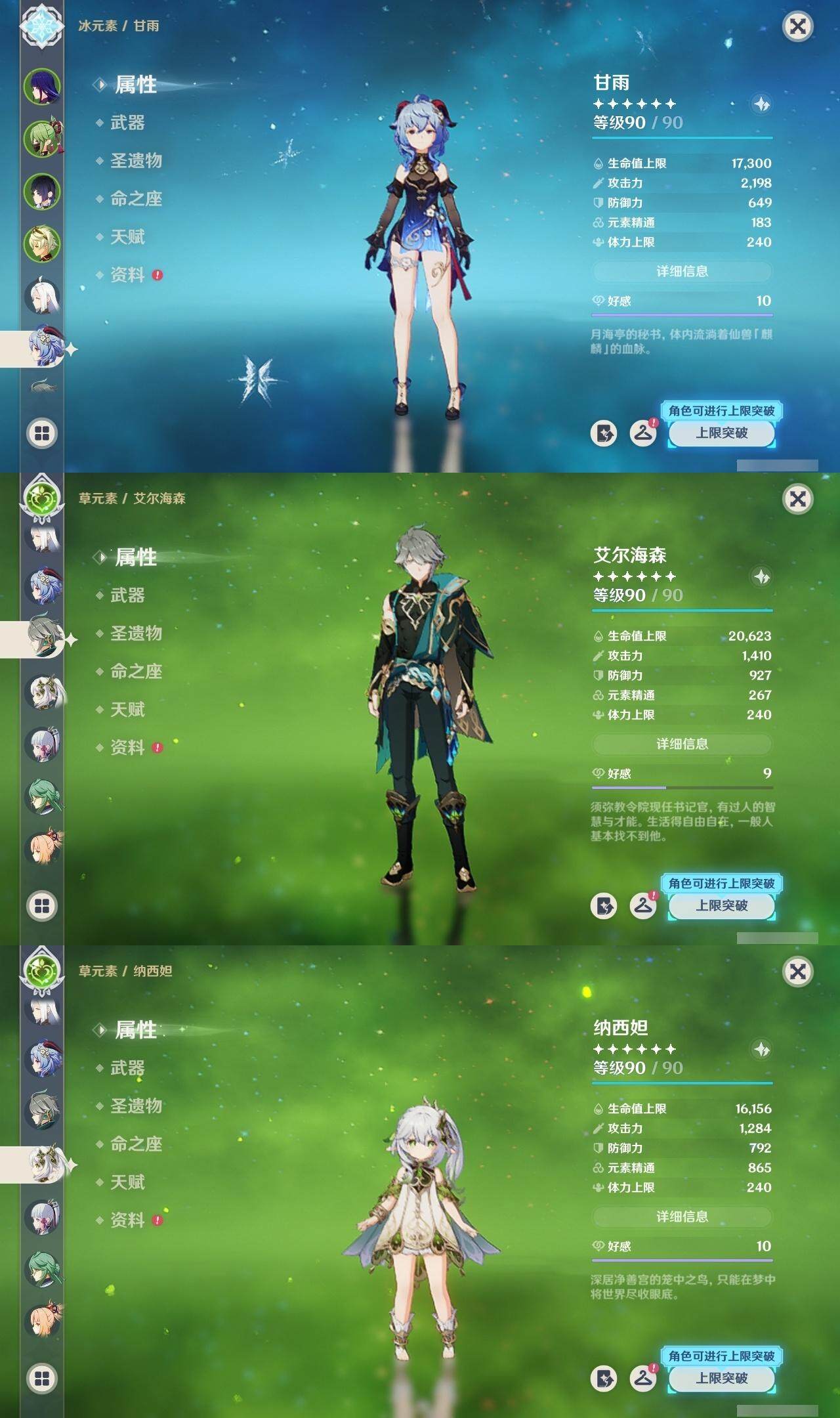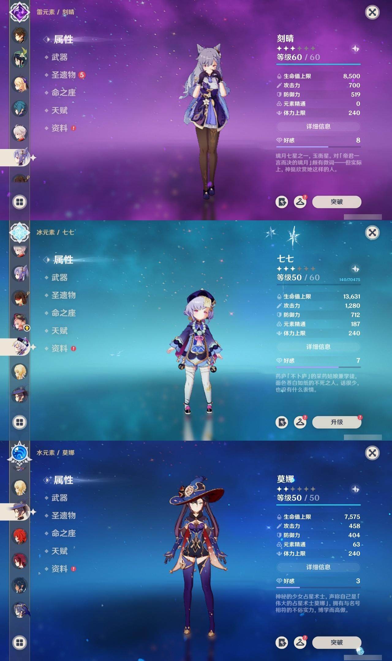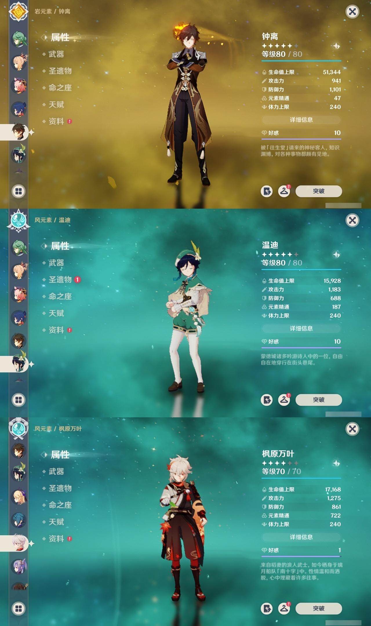 雷电将军,申鹤,甘雨,神里凌华,宵宫,钟离,温迪,枫原万叶,刻晴,七七,莫娜,迪卢克,琴