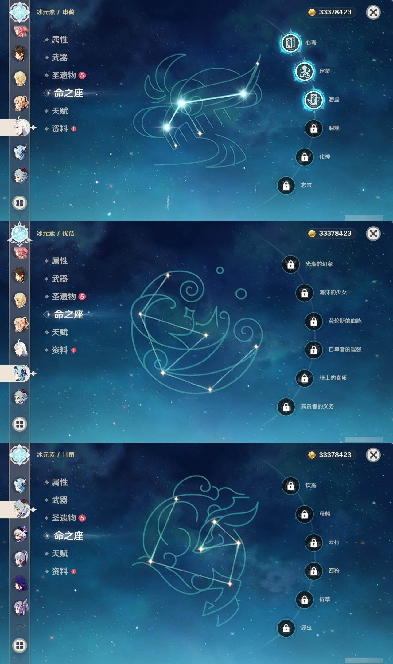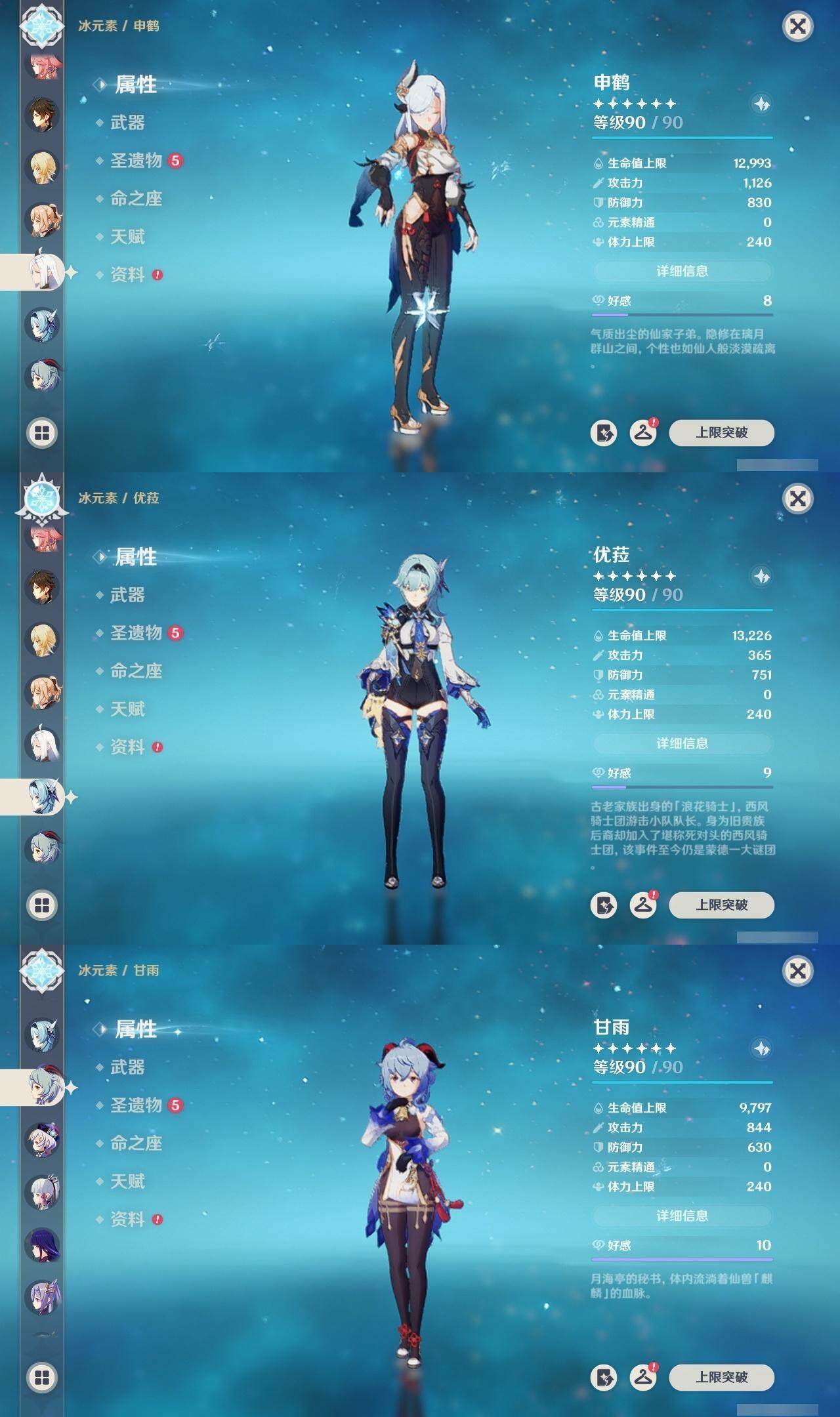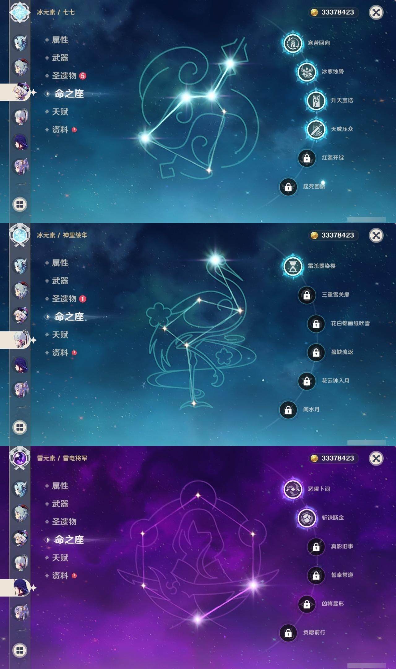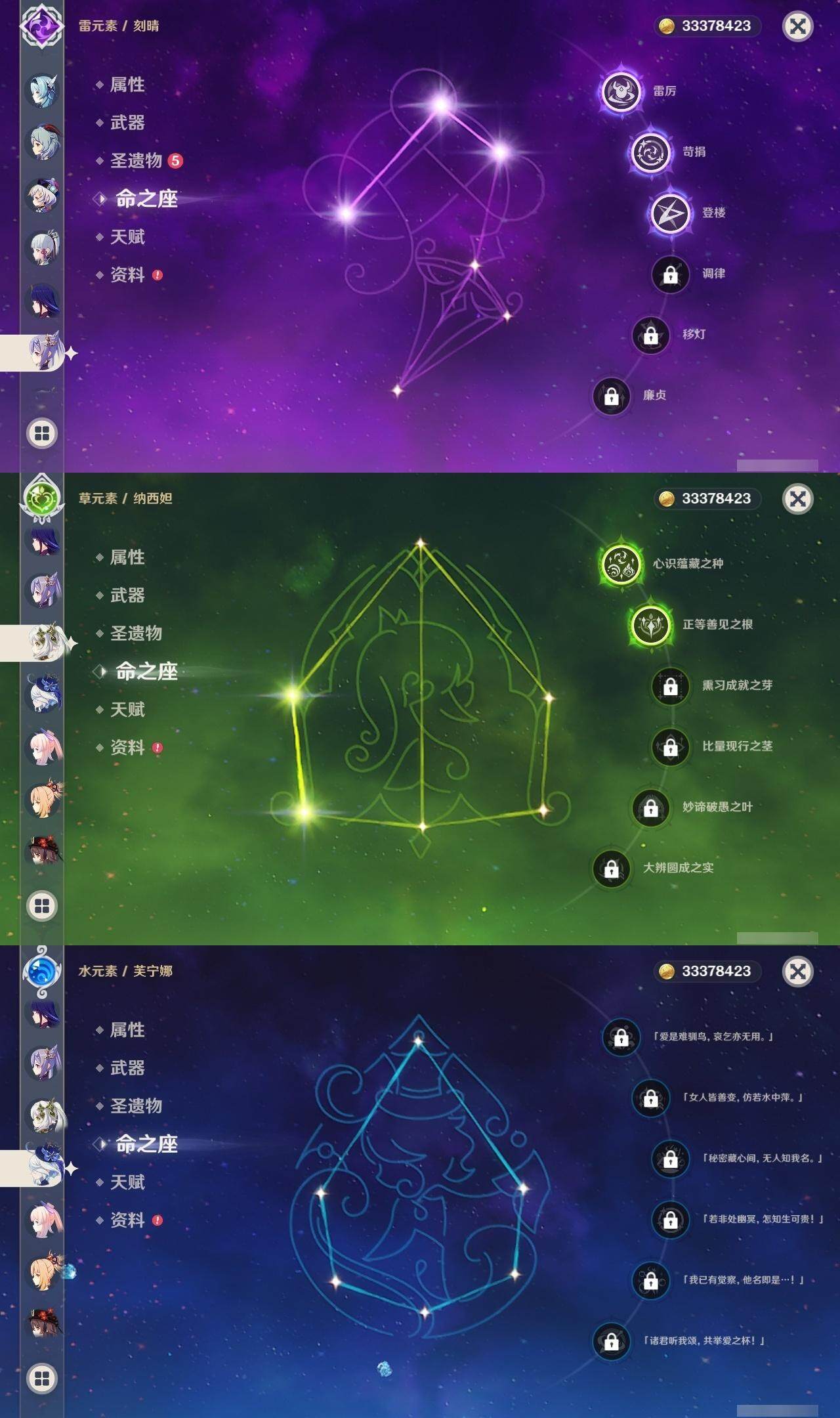 0命千织,0命芙宁娜,0命林尼,2命纳西妲,0命妮露,0命提纳里,满命夜兰,满命八重神子,3命申鹤,0命优菈,2命雷电将军,2命枫原万叶,1命神里绫华,0命钟离,1命胡桃,0命甘雨,0命宵宫,0命温迪,0命达达利亚,0命珊瑚宫心海,3命刻晴,4命七七,满命琴,4命莫娜,满命迪卢克,0命希诺宁,0命丝柯克,0命菲林斯,精1若水,精1和璞鸢,精1天空之卷,精1焚曜千阳,精1支离轮光