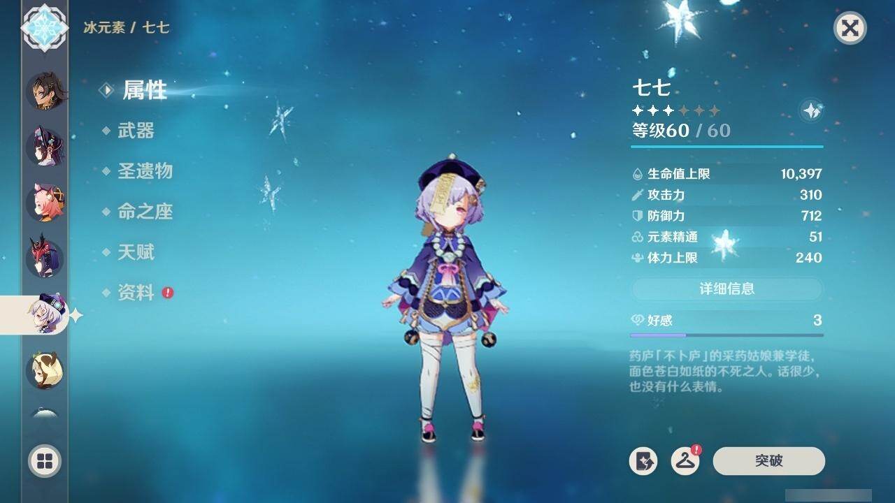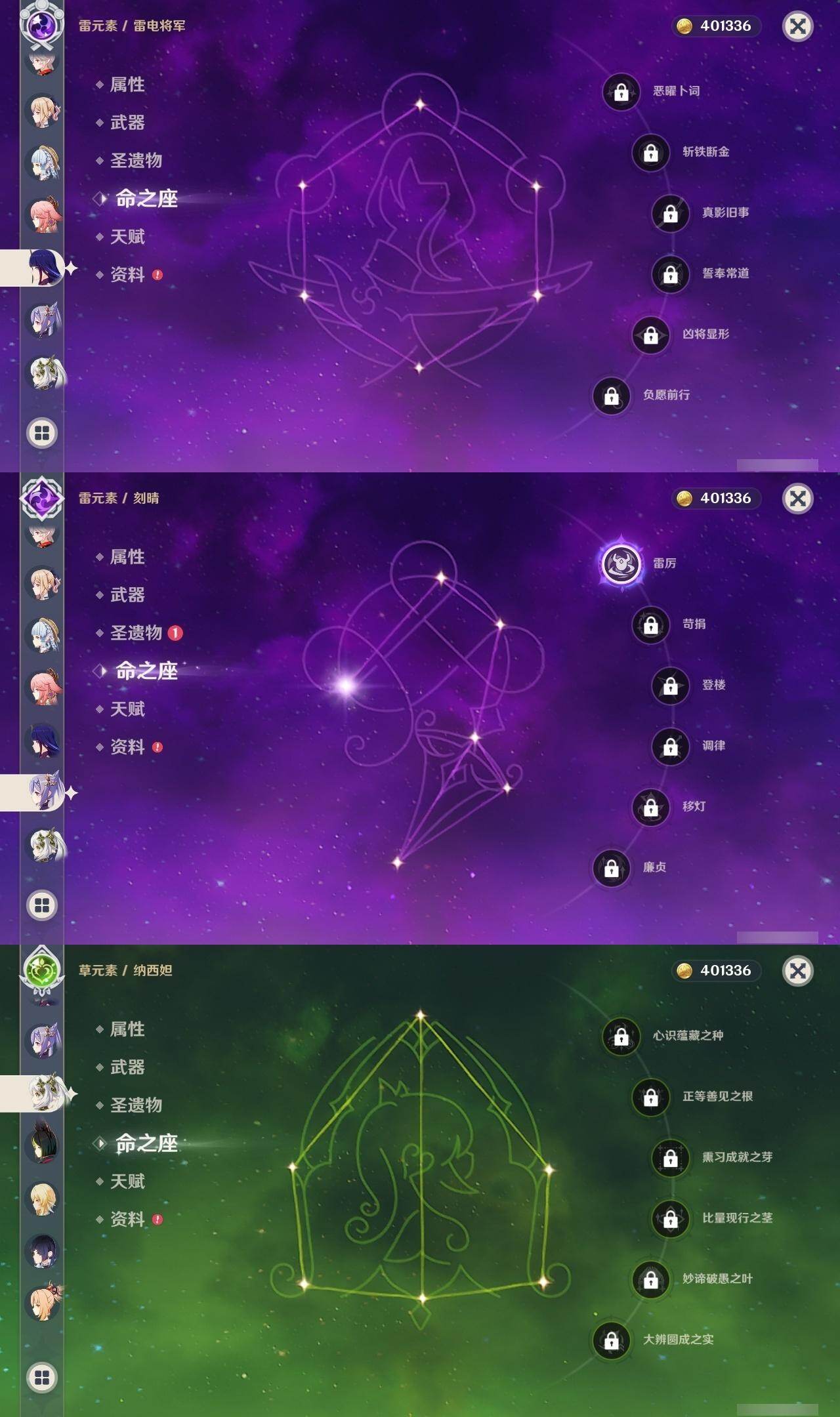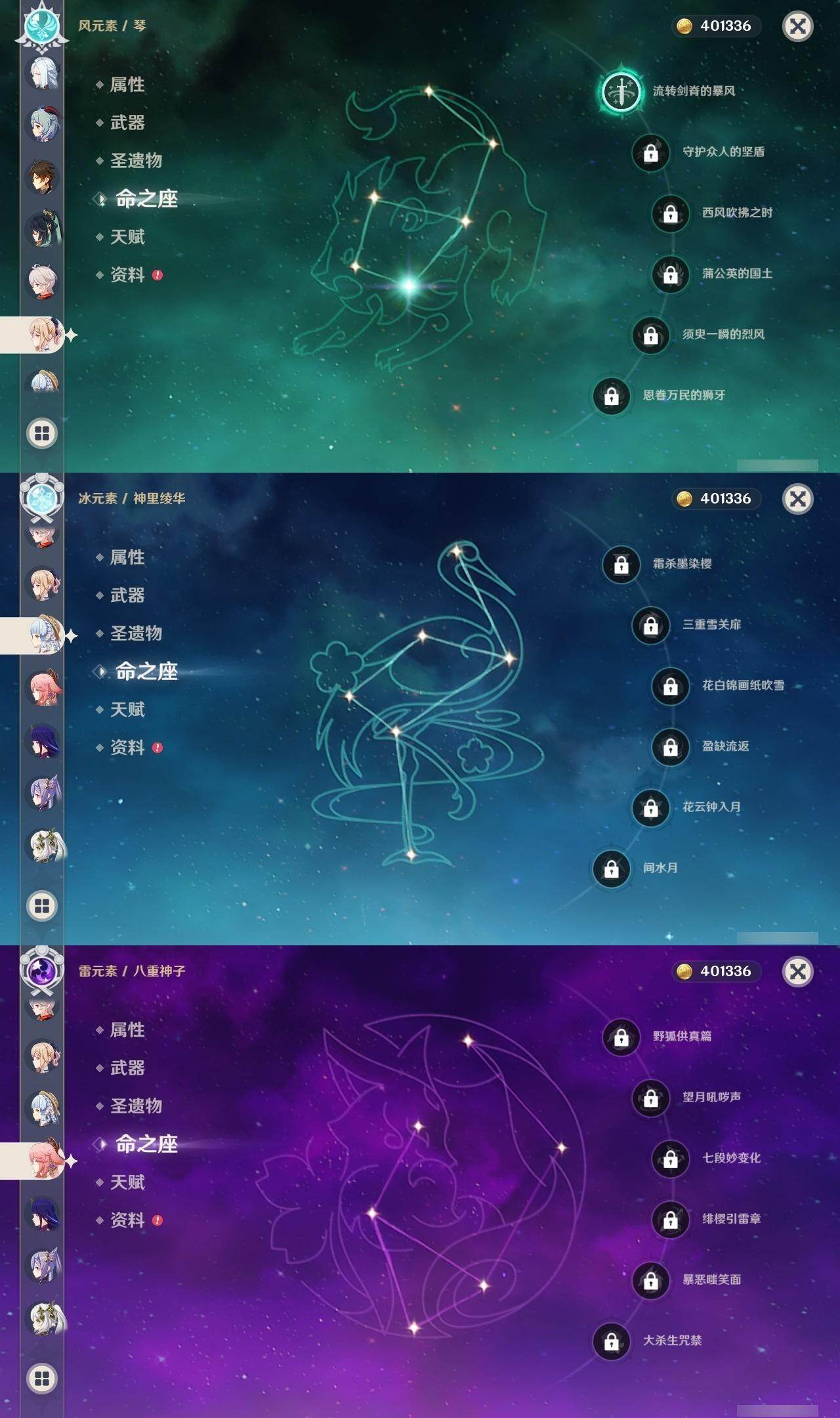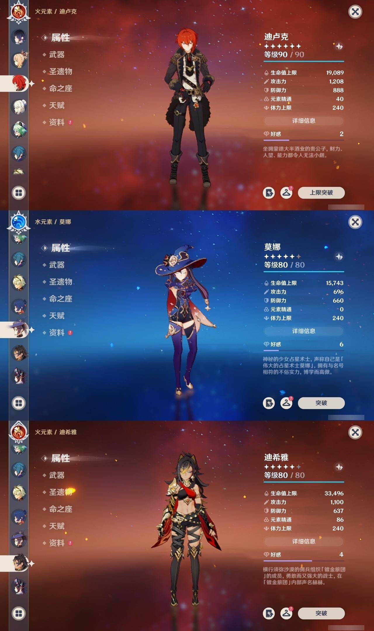 0命闲云,0命娜维娅,0命芙宁娜,1命迪希雅,0命流浪者,0命纳西妲,2命提纳里,0命夜兰,0命八重神子,0命申鹤,0命雷电将军,0命枫原万叶,0命神里绫华,1命钟离,0命甘雨,0命宵宫,1命刻晴,1命七七,1命琴,2命莫娜,1命迪卢克,0命菲林斯,精1神乐之真意,精1飞雷之弦振,精1天空之脊,精1天空之刃,精1狼的末路,精1天空之傲