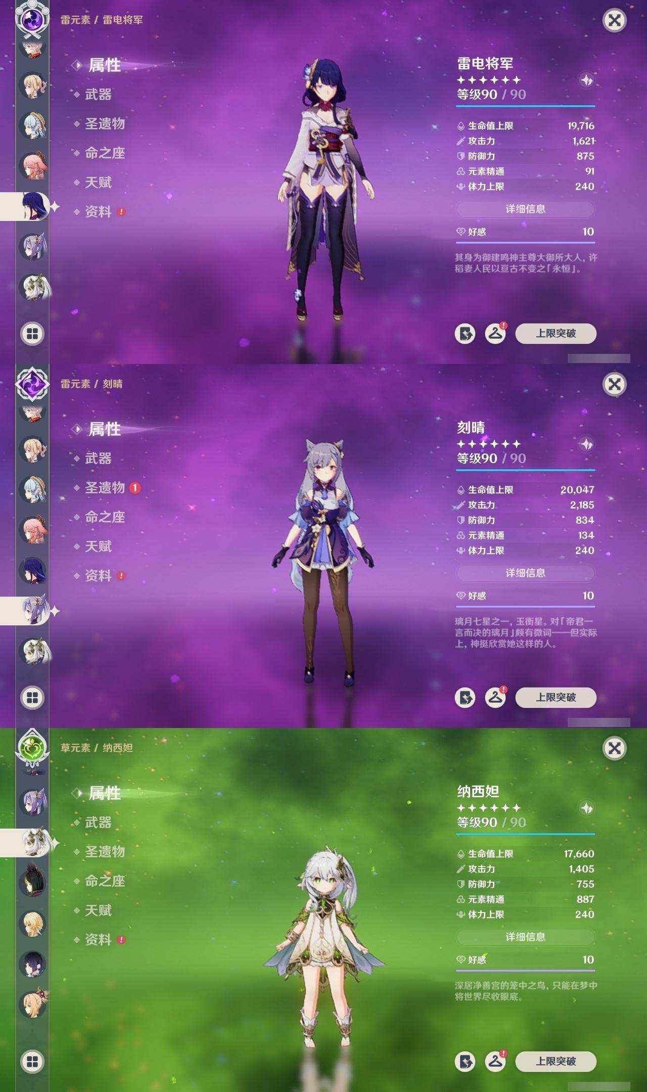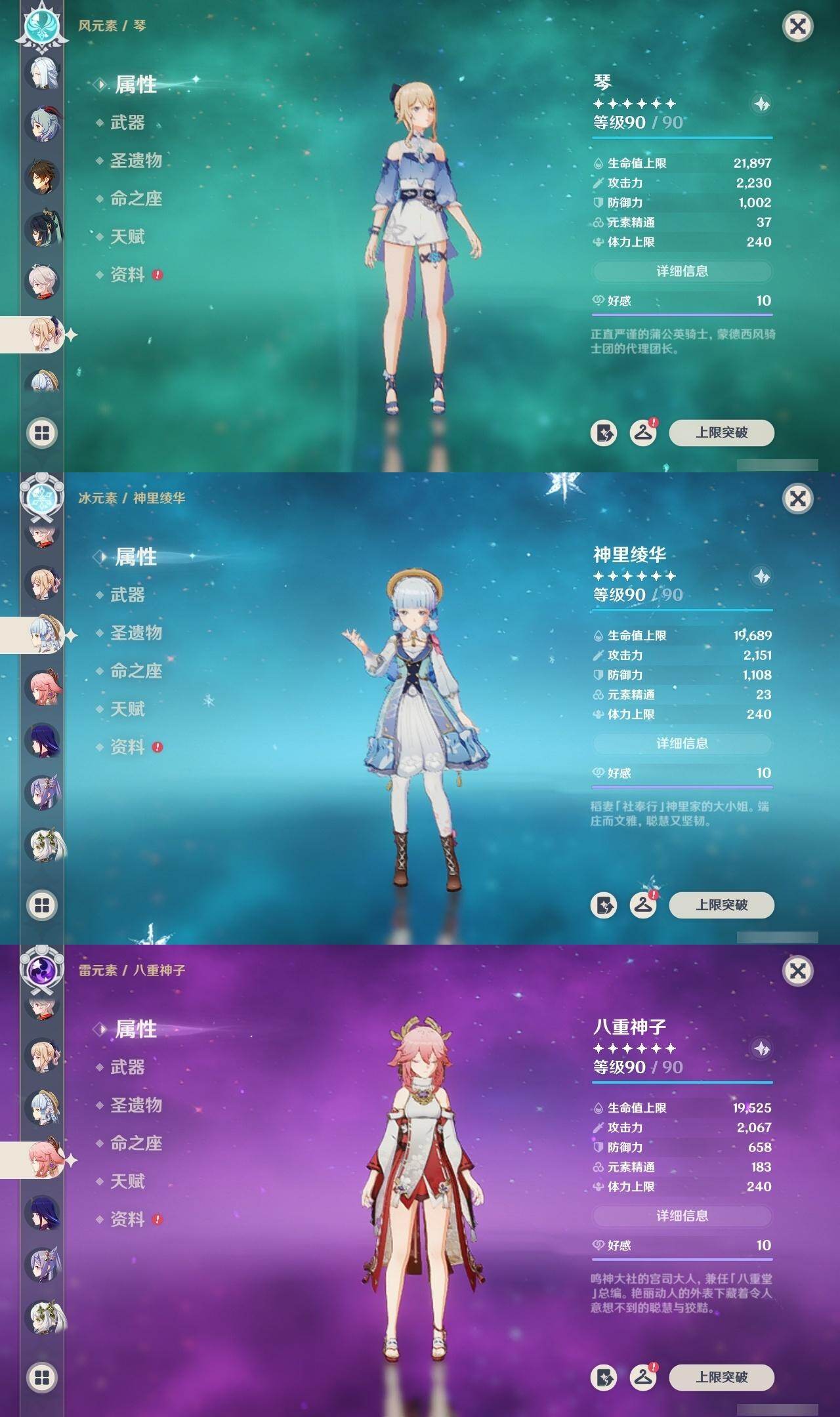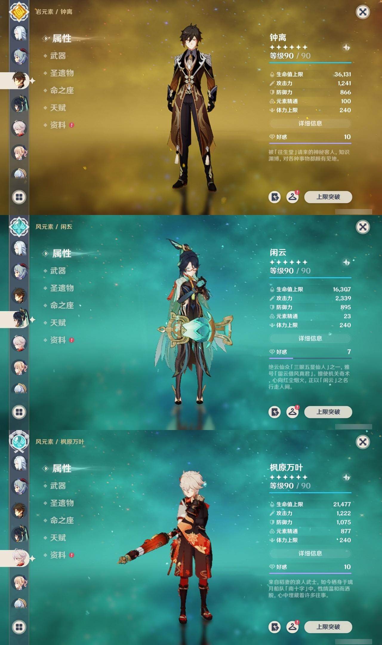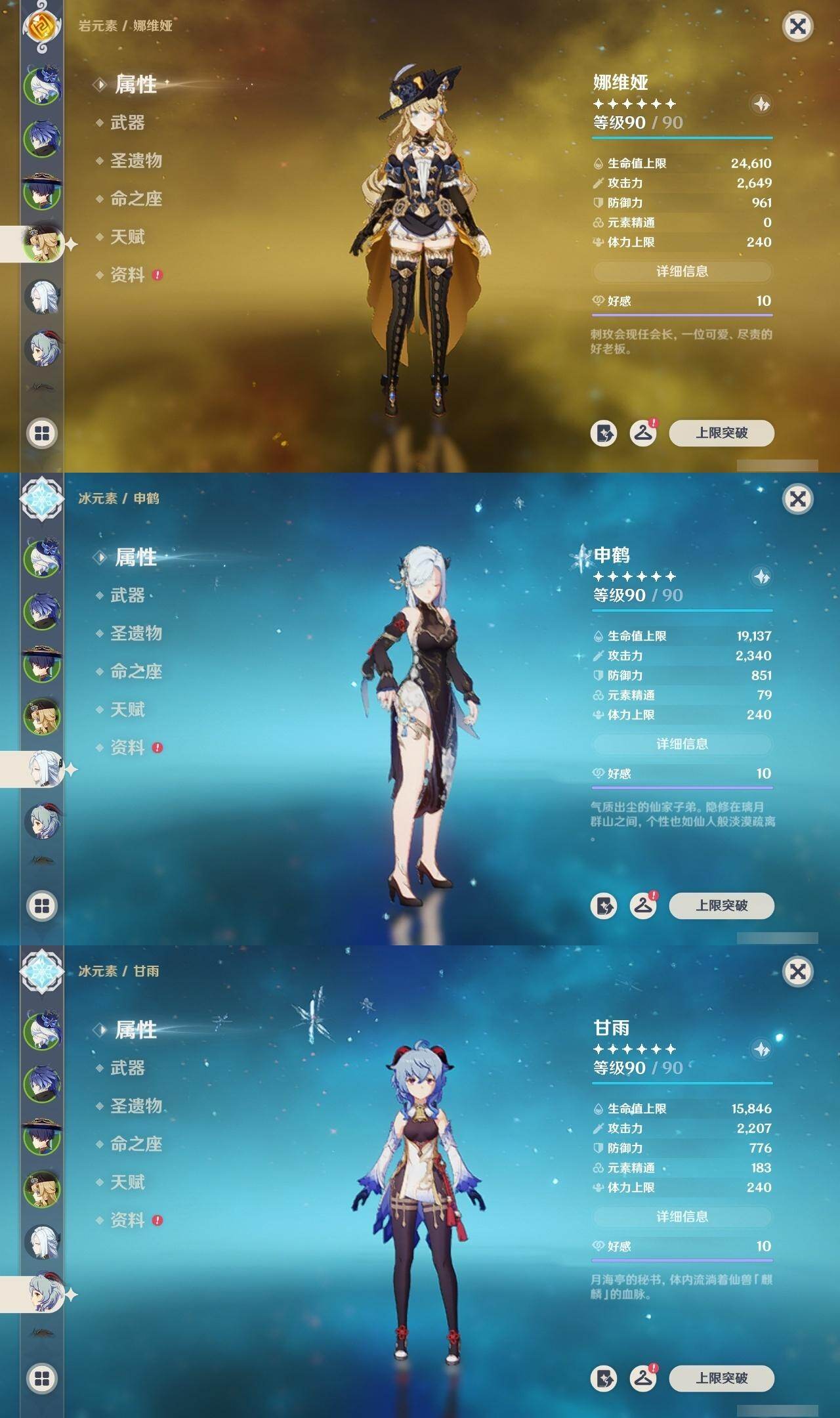 申鹤,甘雨,钟离,枫原万叶,琴,神里凌华,八重神子,雷电将军,刻晴,宵宫,迪卢克,莫娜,七七
