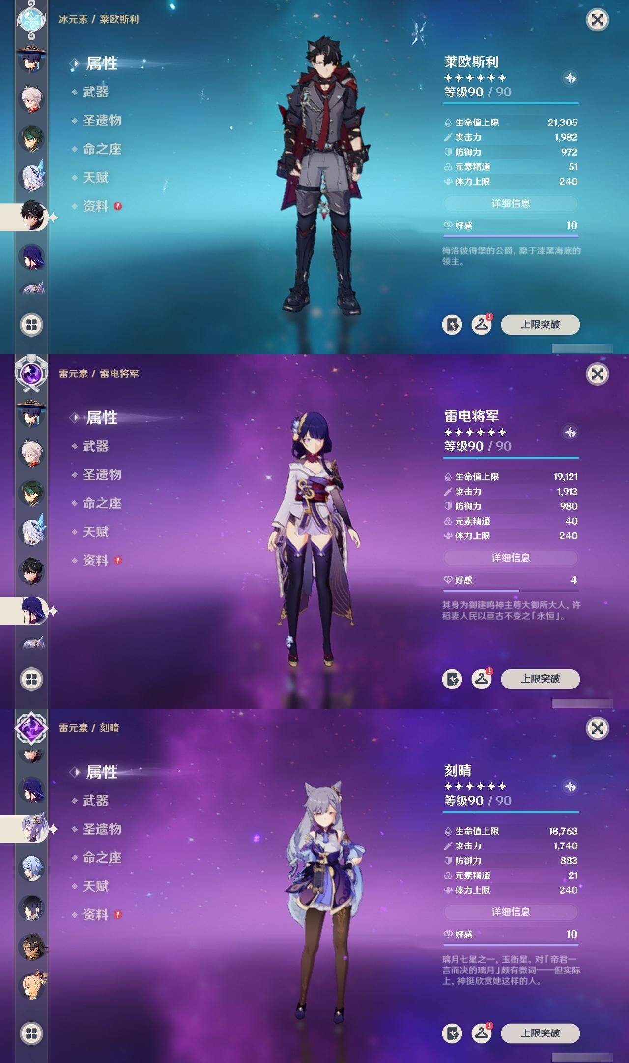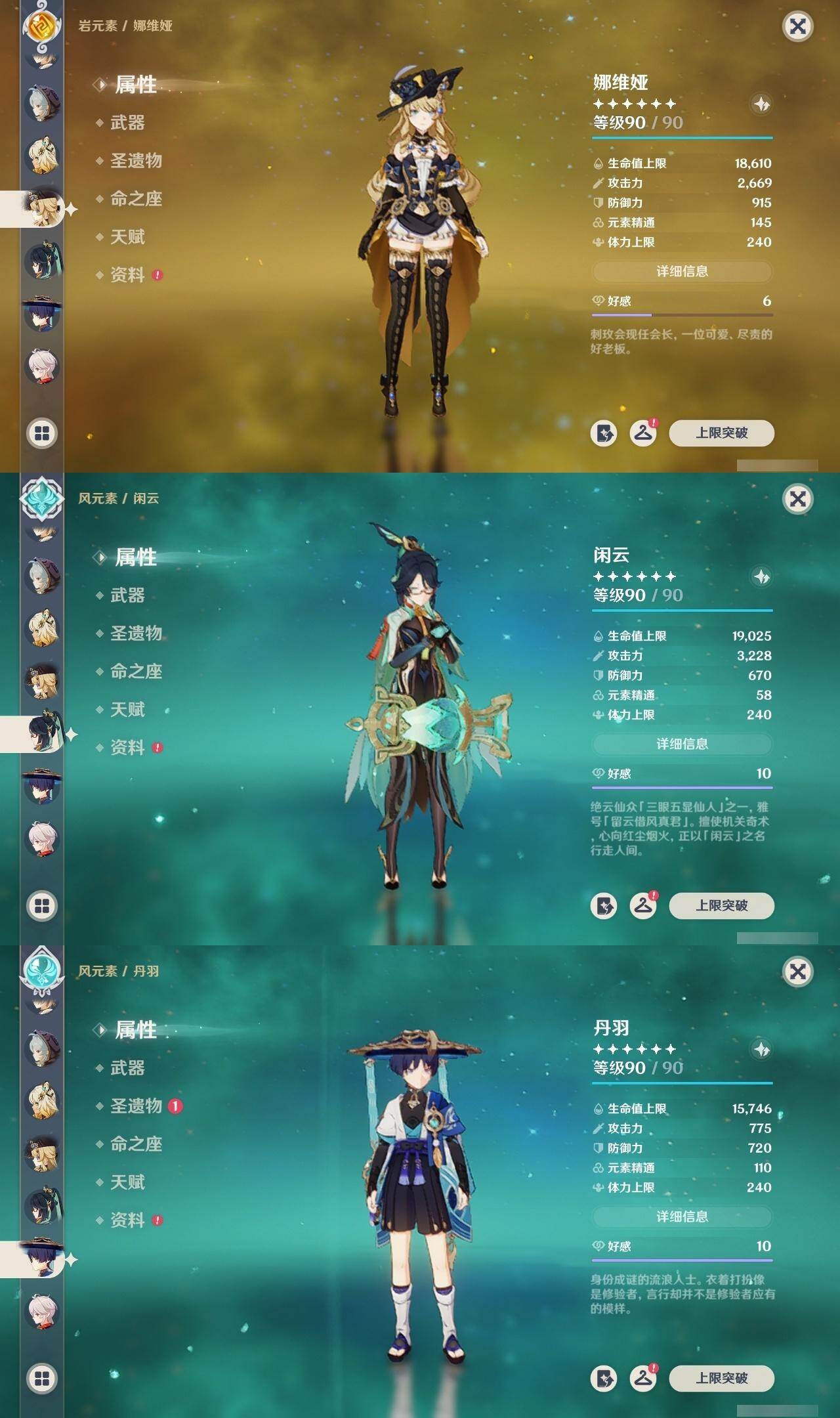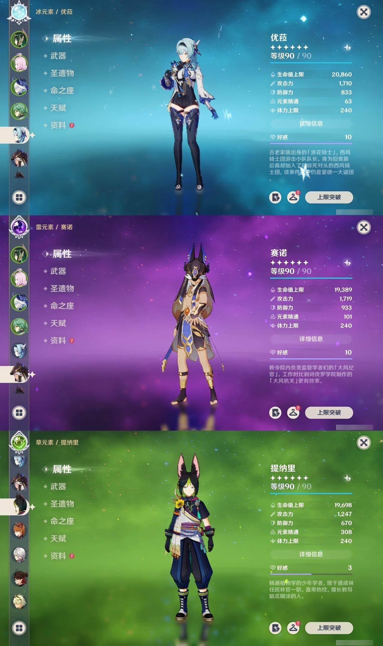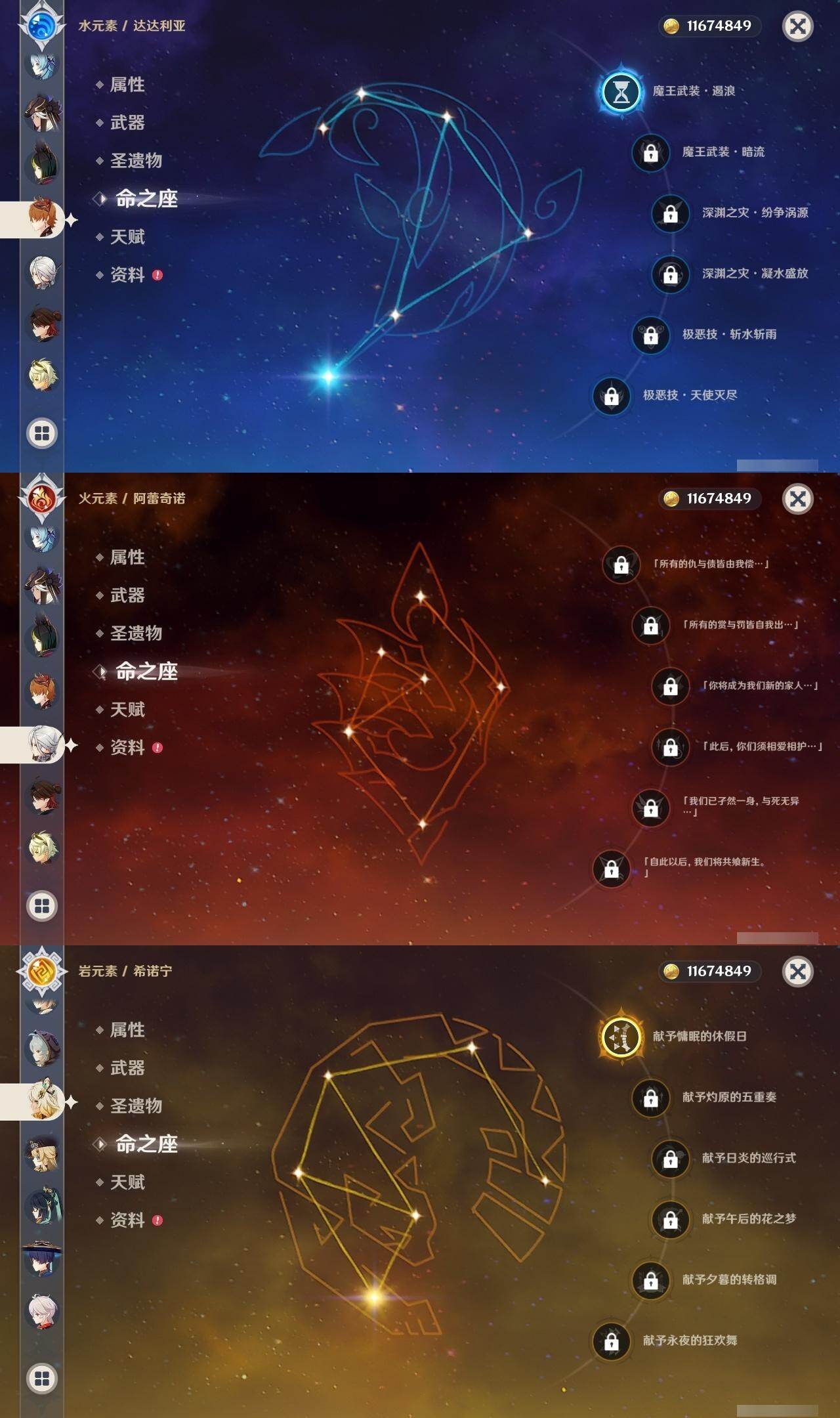 0命阿蕾奇诺,0命闲云,0命娜维娅,0命芙宁娜,0命莱欧斯利,0命白术,2命迪希雅,0命流浪者,2命赛诺,3命提纳里,0命夜兰,0命神里绫人,0命优菈,0命雷电将军,0命枫原万叶,0命魈,0命宵宫,1命达达利亚,4命刻晴,3命七七,0命琴,3命莫娜,2命迪卢克,1命希诺宁,0命丝柯克,0命奈芙尔,精1赤月之形,精1最初的大魔术,精1苇海信标,精1赤沙之杖,精1若水,精1波乱月白经津,精1神乐之真意,精1息灾,精1护摩之杖,精1四风原典,精1和璞鸢,精1天空之刃,精1斫峰之刃,精1天空之卷,精1风鹰剑,精1狼的末路