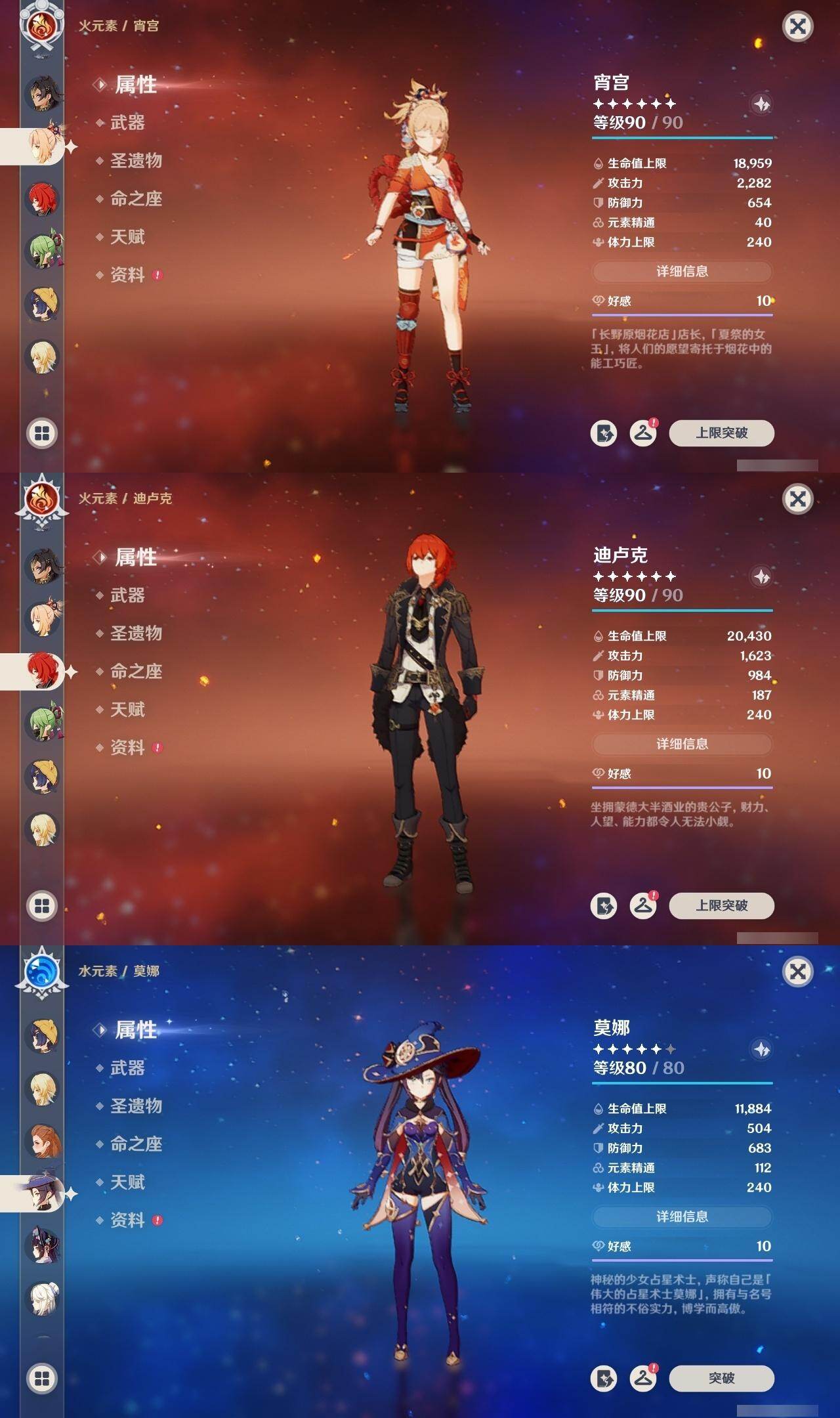 优菈,达达利亚,枫原万叶,魈,雷电将军,刻晴,宵宫,迪卢克,莫娜,琴,七七