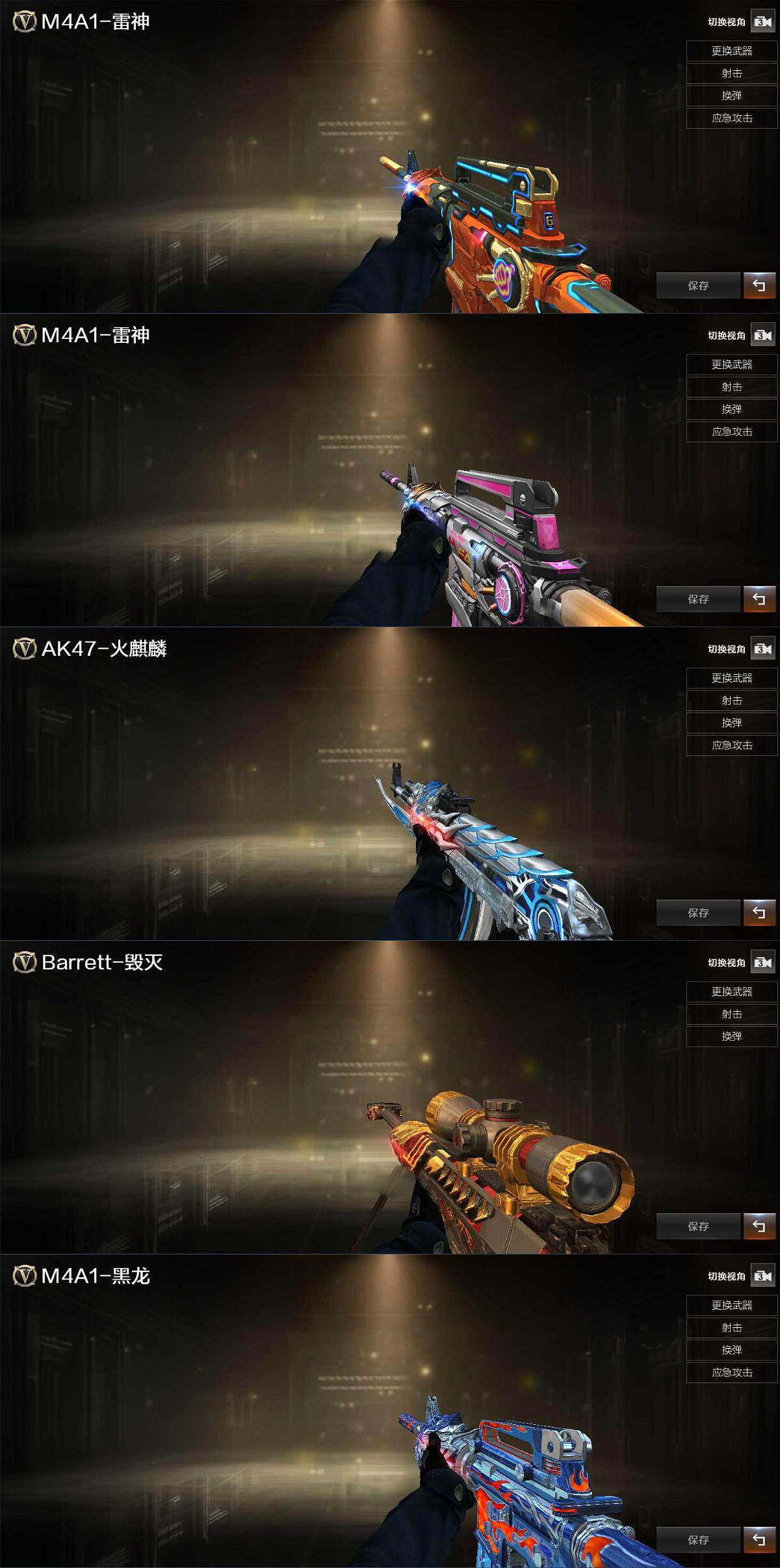 【热门武器】:QBZ03-金色蔷薇,M200-竞技荣光,M4A1-黑骑士,汤姆逊-烈龙,加特林-炼狱,沙鹰-修罗