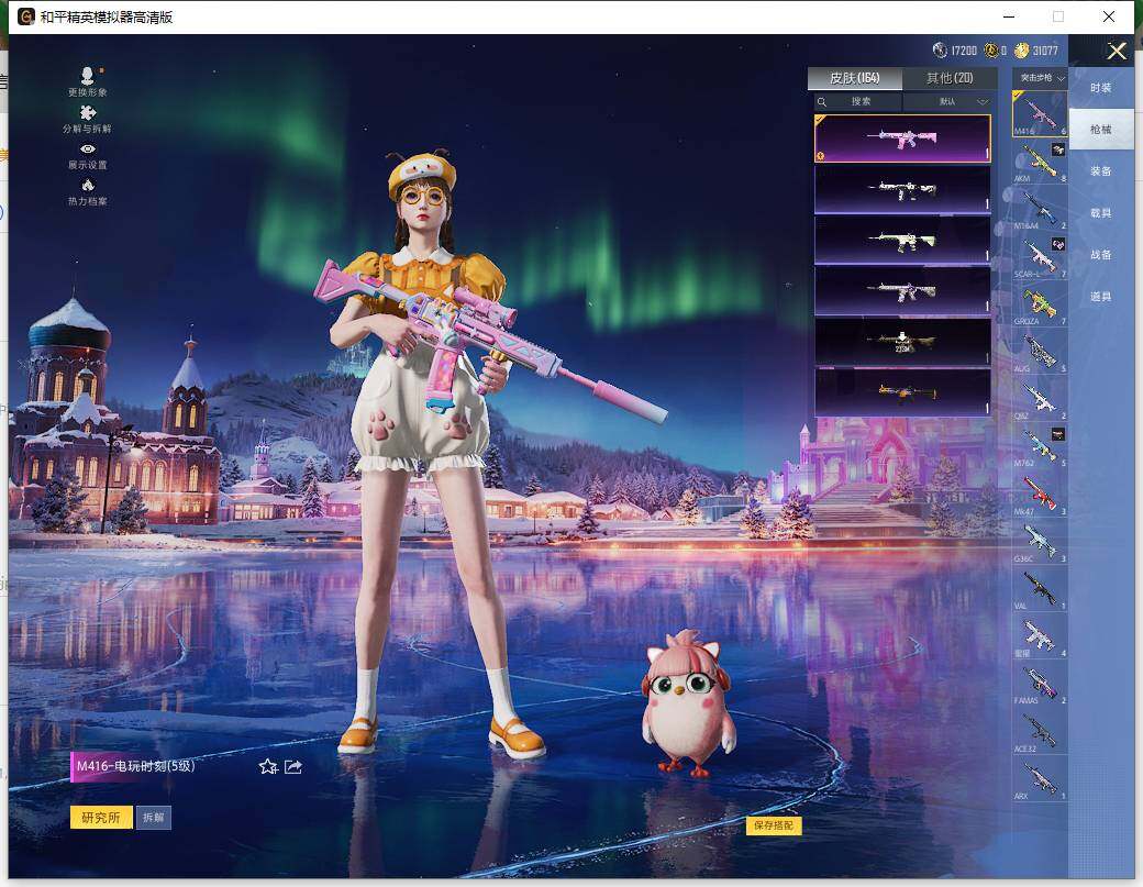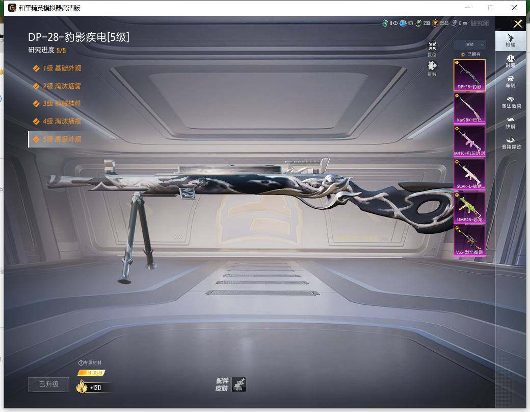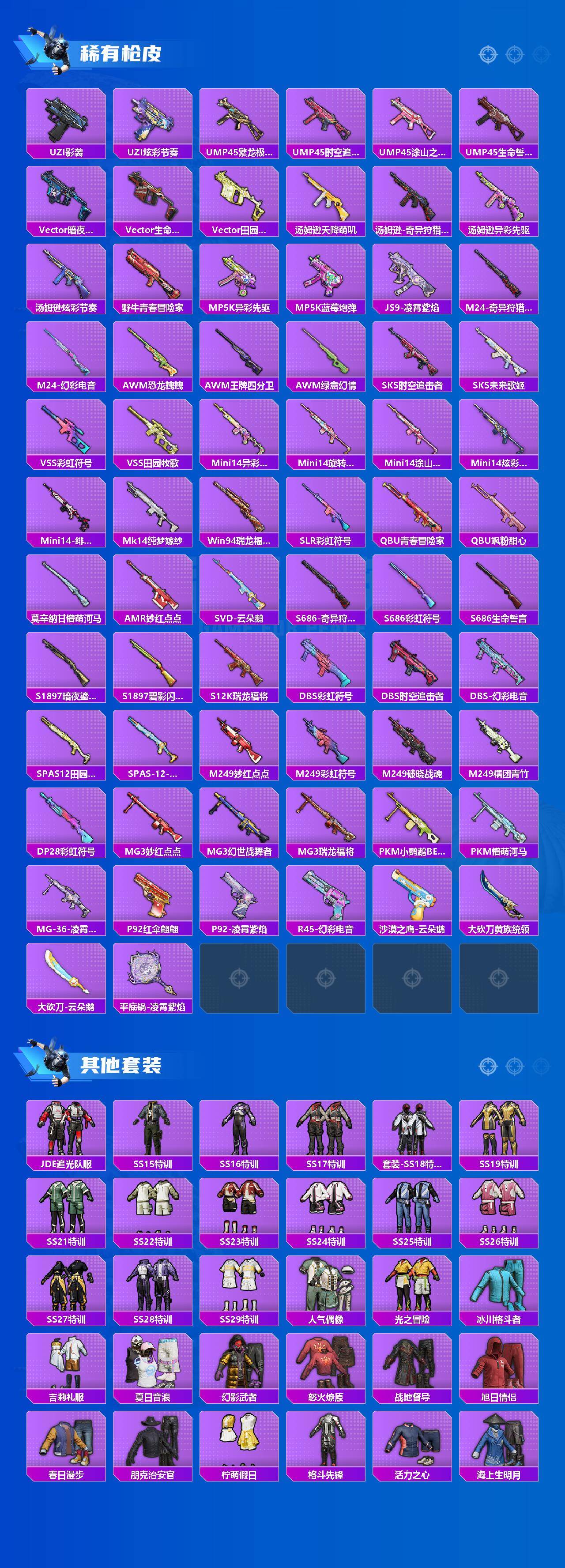 SCAR-L-锦绣绵绵,M416-电玩时刻,UMP45-恐龙拽拽,Kar98K-巳巳如意,VSS-烈焰拳霸