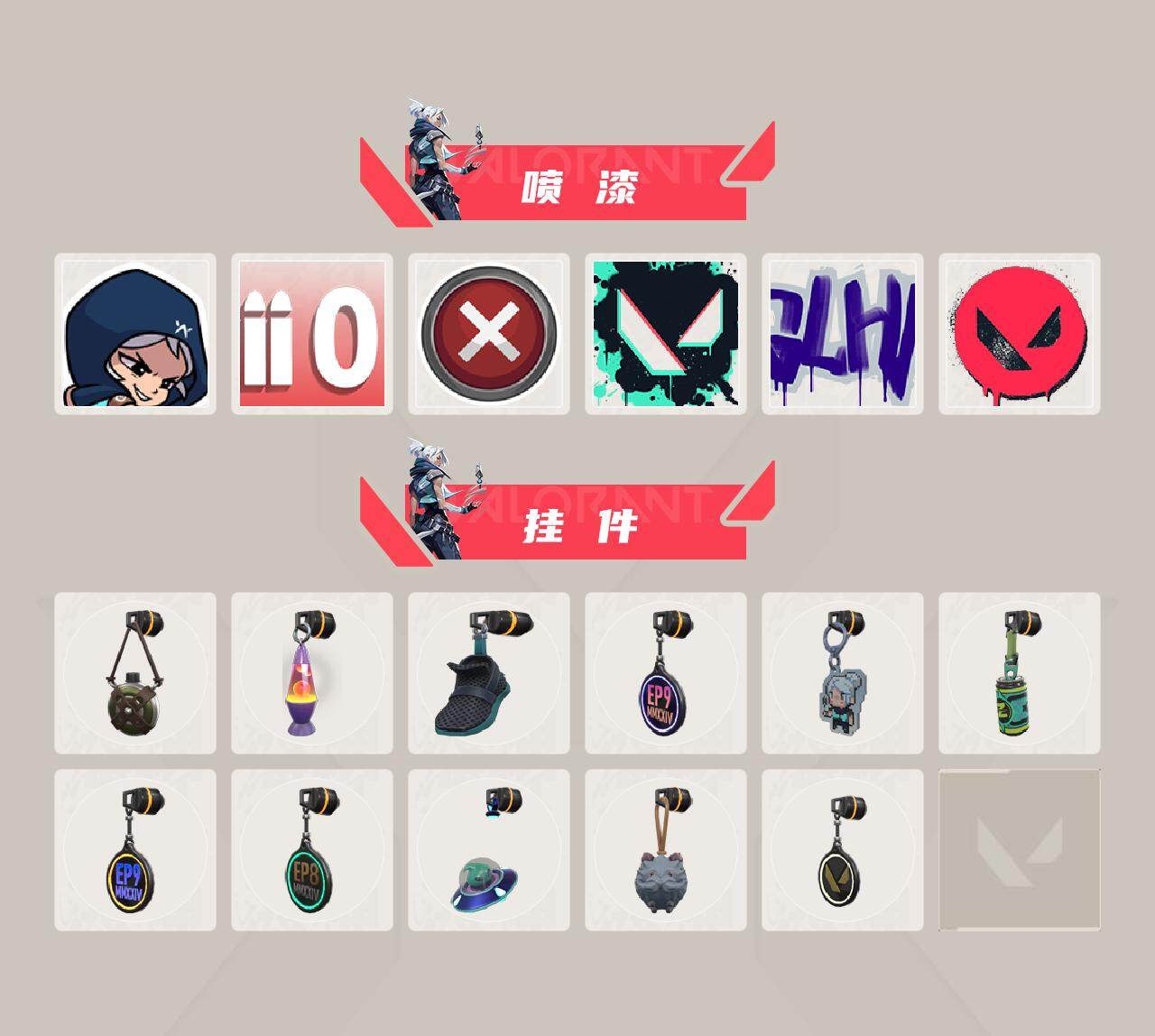 【喷漆】:独守蝰腹 喷漆,通缉:战术企鹅 喷漆,都算到了 喷漆,熊抱 喷漆,蛋糕还是爆能器? 喷漆,超级粉丝 喷漆,捷风差距 喷漆,拼一枪 喷漆,买装还是存钱 喷漆,胜利属于无畏契约 喷漆,GLHF 喷漆,无畏契约 喷漆
