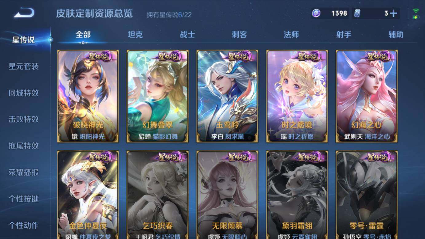 武则天女帝,小乔天鹅之梦,鲁班七号星空梦想,武则天倪克斯神谕,孙尚香杀手不太冷,李白鸣剑·曳影,诸葛亮星域神启,花木兰九霄神辉,铠银白咏叹调,貂蝉幻阙歌,虞姬神鉴启示录,瑶拾光映像,伽罗最初的交响