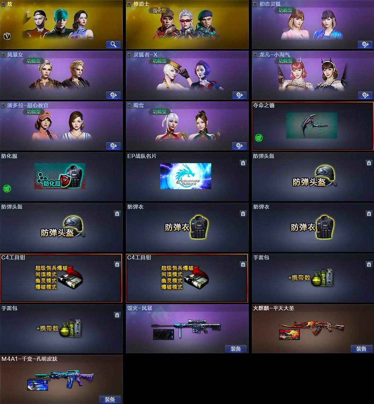 【道具】:夺命之镰,防化服,EP战队名片,防弹头盔*2,防弹衣*2,C4工具钳*2,手雷包*2