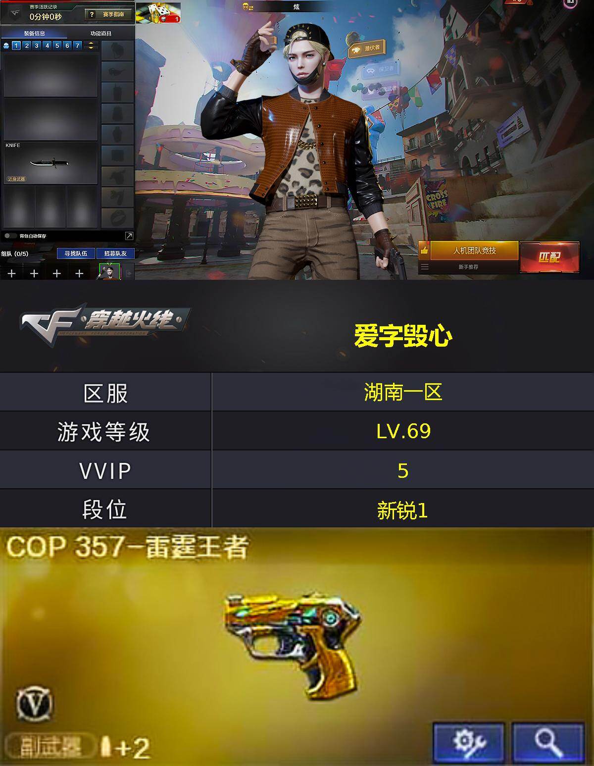 [15566561]湖南一区-6V-18王者-0炫金 【王者炫金武器】:雷霆王者之锋 【皮肤】:火麒麟-平天大圣,毁灭-风暴,M4A1-千变-孔明皮肤 【角色】:炫,修道士,初恋灵狐,风暴女,灵狐者-X,龙儿-小淘气,潘多拉-甜心教官,蜀雪 【人偶武器】:深渊终结者手雷 【挑战大师】:冰龙粉碎者-白马银枪*2 【英雄级武器】:Barrett-毁灭,COP 357-雷霆王者-觉醒版,擎天,高爆手雷-幻灵 【道具】:夺命之镰,防化服,EP战队名片,防弹头盔*2,防弹衣*2,C4工具钳*2,手雷包*2 【特殊枪械】: