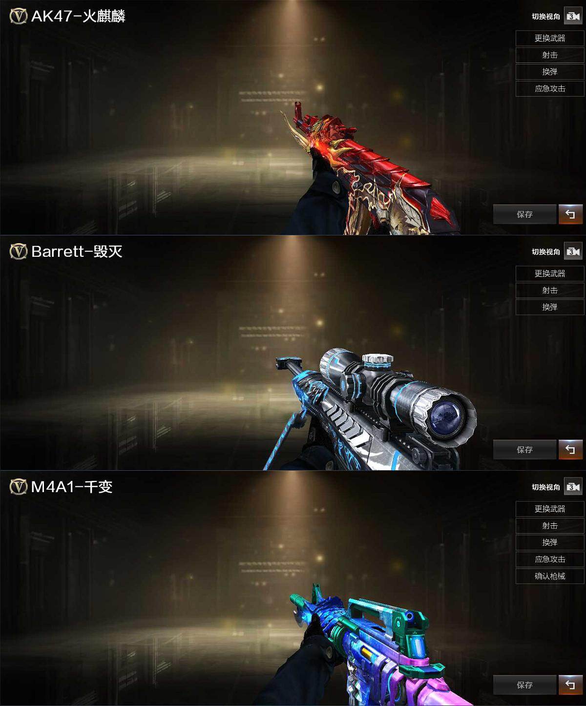 【皮肤】:火麒麟-平天大圣,毁灭-风暴,M4A1-千变-孔明皮肤