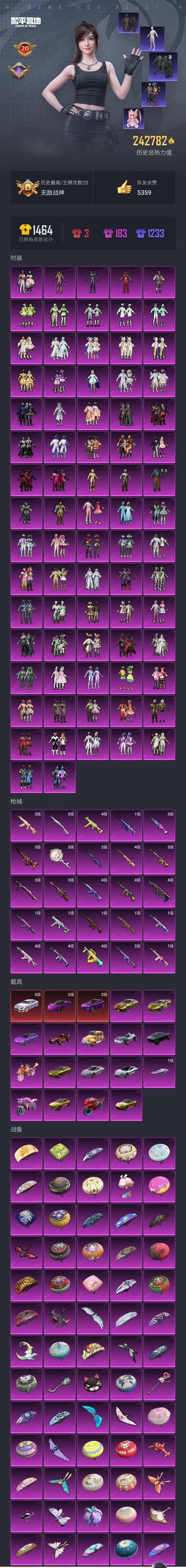 [15572557]背包枪械材料多!9个车辆升级徽章!11个三币车安卓 微信-无敌战神框-77粉装-25特效枪-19载具-16粉色飞行器-242870热力值-20王牌印记-359套装-338枪皮 【红色载具】:路特斯ELETRE(电光紫)(二级),路特斯EVIJA(电光紫)(二级),玛莎拉蒂Quattroporte(幻星粉)(五级) 【热门品类】:粉装-怪诞乔克,粉装-雪国幻梦,粉装-梦幻火箭,粉装-童趣迷兔,粉装-缤纷油彩,套装-浪漫天命,套装-都市猎人,套装-冥河战士,套装-深海小丑鱼,套装-小丑鱼,套装-奇异狩猎者,角色-军刀雅典娜,套装-胖达团团,套装-胖达圆圆,套装-动感兔斯基人偶服,套装-龟仙人,套装-潮萌小黄鸭,套装-暗影哥特,套装-浪漫波比,套装-粉红小猪,套装-萌熊伴侣 【粉色套装】:粉装-深海曼妙,粉装-粉色回忆,粉装-怪诞乔克,粉装-深渊皇后,粉装-甜心巧克力,粉装-宝贝奶油派,粉装-天使彩虹糖,粉装-雪国幻梦,粉装-蝶舞迷情,粉装-精灵迷巫,粉装-梦幻火箭,粉装-金属狂野,粉装-静灵氛围,粉装-智能音符,粉装-缤纷油彩,粉装-放客神游,粉装-天禅智恒,粉装-新星烈龙,粉装-向日葵,粉装-甜蜜誓约,粉装-极致幻想,粉装-花间之火,粉装-潮汐统领,粉装-锦绣火鲤,粉装-铁甲悍将,粉装-黄蜂伯爵,粉装-鳞翅贤者,粉装-迷蝶贵族,粉装-星点战士,粉装-俏皮狐尾,粉装-草莓生巧,粉装-苍蓝魅影,粉装-翡翠骑士,粉装-绚金战神,粉装-冰霜白皇,粉装-童趣迷兔,粉装-炙焰红王,粉装-香水柠檬,粉装-暗翼战神,粉装-绮梦青鸾,粉装-星之彼岸,粉装-相思残雪,粉装-甜梦冰蝶,粉装-绿野柔风,粉装-馨动时刻,粉装-烈焰拳霸,粉装-虎啸骄阳,粉装-飓风飞鹰,粉装-枪炮玫瑰,粉装-蜜桃特工,粉装-蝶舞蔷薇,粉装-葫芦兄弟,粉装-铁血龙王,粉装-焰龙焚天,粉装-骨龙祭渊,粉装-暗夜玫瑰,角色-闪耀迪迦,角色-赛罗闪耀型,粉装-彩虹鹿灵,粉装-山涧鹿灵,角色-洛天依,角色-零号机款机体服,角色-初号机款机体服,角色-2号机款机体服,粉装-蓝莓炮弹,粉装-绚金瑰梦,粉装-甜心娃娃,粉装-精灵娃娃,粉装-酣梦娃娃,粉装-天之羽翼,粉装-焦糖拿铁,粉装-碧影闪光,粉装-岚岚物语,粉装-海盐物语,粉装-薄荷物语,粉装-恐龙拽拽,粉装-星穹咏叹调 【粉色枪皮等级】:AKM-甜心宝贝(一级),AKM