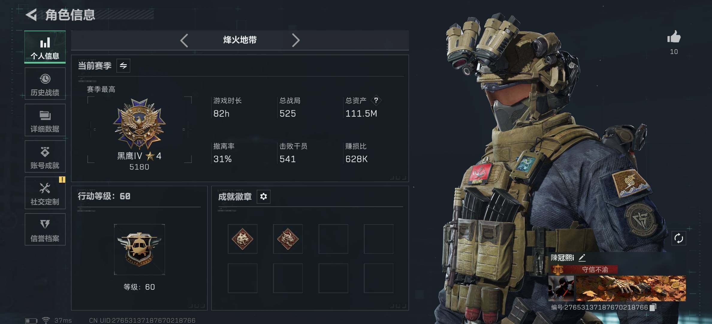 111m总资产-57758k哈伏币-60烽火等级-黑鹰-11战场等级-列兵