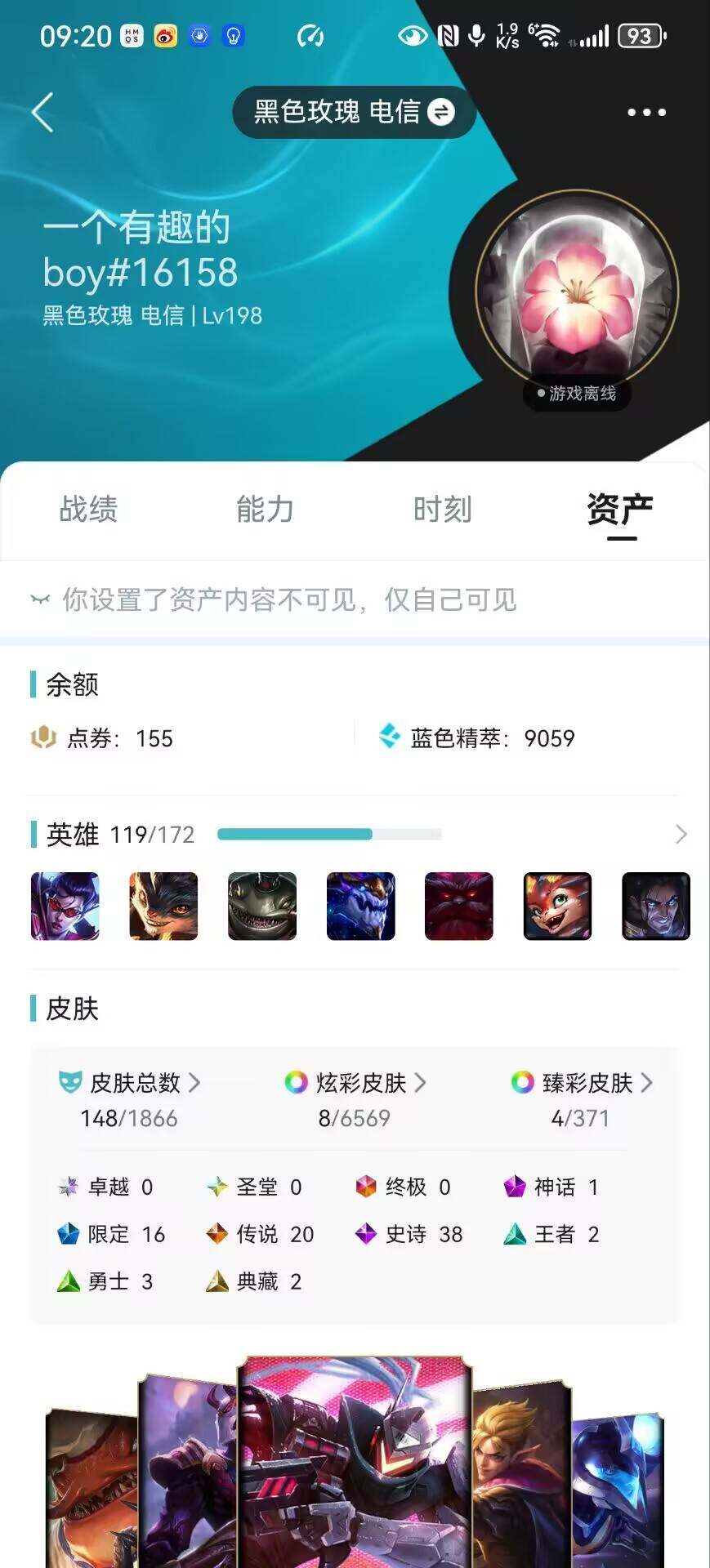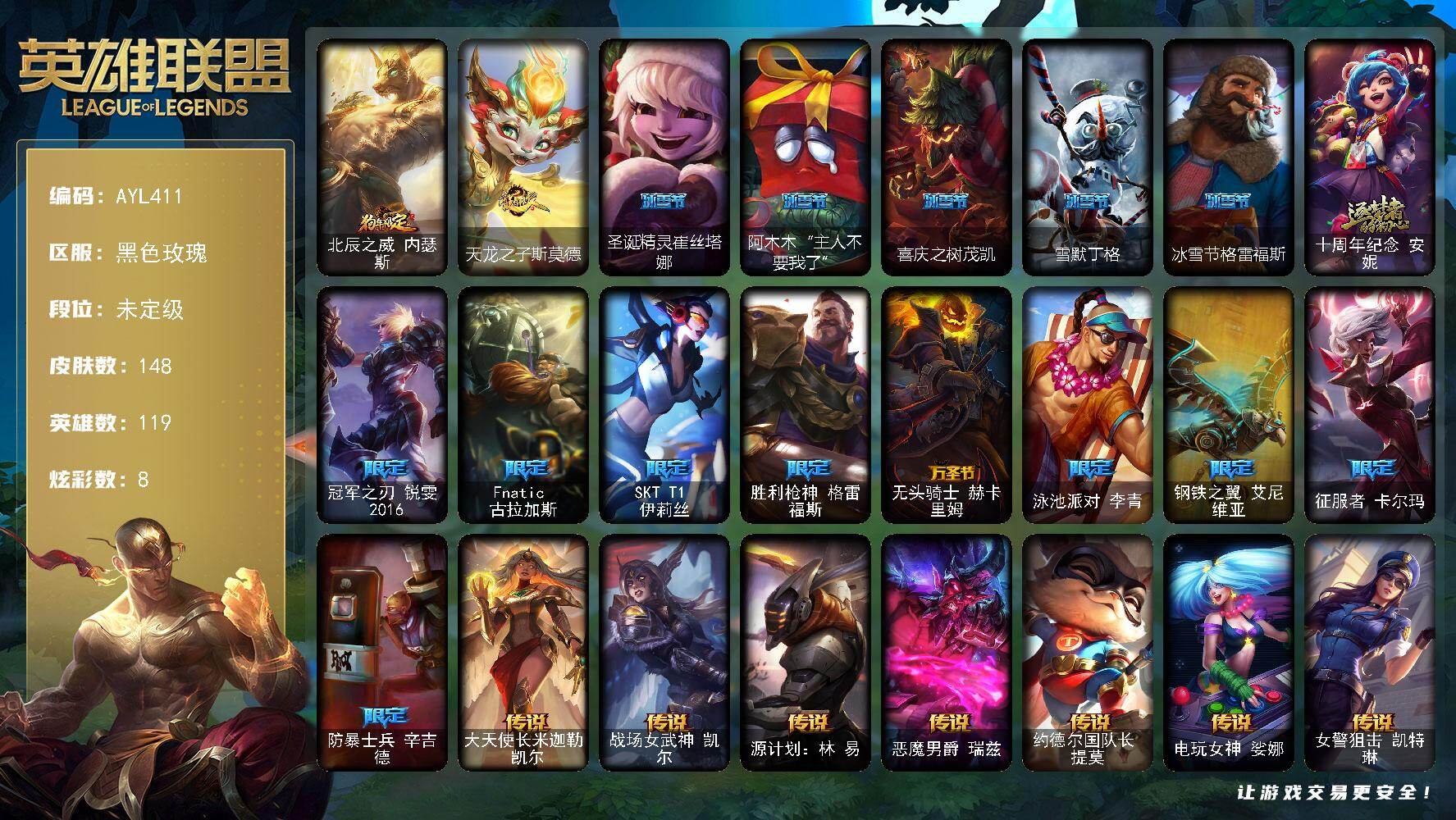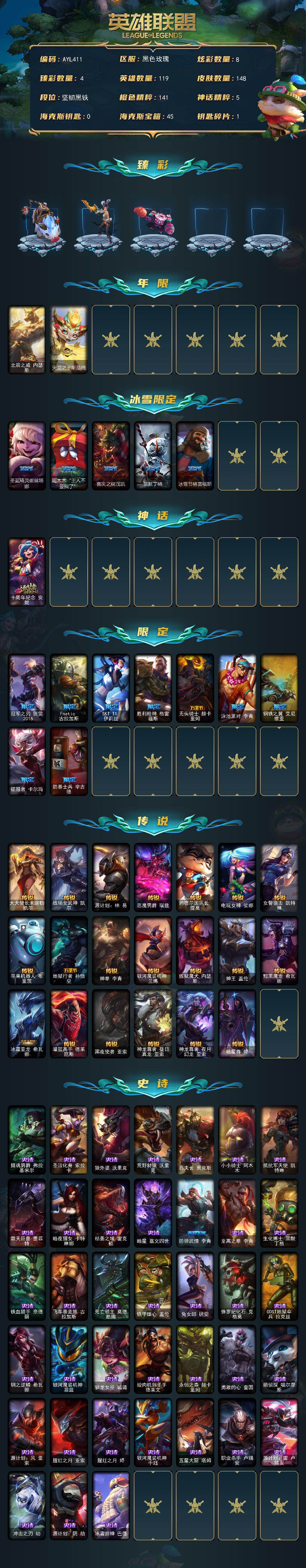 [15577956]可二次【特价出售/店主推荐】未定级段位-119英雄-148皮肤-8炫彩-0终极-1神话-16限定-20传说-38史诗
