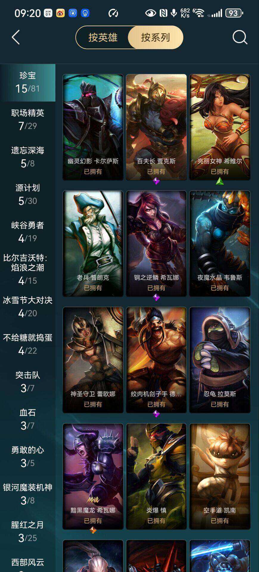 【史诗皮肤】:摄魂男爵弗拉基米尔,圣洁化身索拉卡,狼外婆沃里克,荒野豺狼沃里克,百夫长贾克斯,小小骑士阿木木,抵抗军天使凯特琳,霸天巨兽墨菲特,暗夜猫女卡特琳娜,枯萎之壤雷克顿,暗星嘉文四世,防弹武僧李青,至高之拳李青,生化博士黑默丁格,铁血猎手奈德丽,飞车暴走族古拉加斯,死亡领主莫德凯撒,铁甲雄心盖伦,兔女郎锐雯,侏罗纪化石克格莫,ODST地狱伞兵拉克丝,钢之逆鳞希瓦娜,银河魔装机神菲兹,驯龙女巫璐璐,绞肉机刽子手德莱文,永恒之森赫卡里姆,勇敢的心奎因,萌侦探喵尔摩斯,源计划风亚索,腥红之月亚索,腥红之月烬,银河魔装机神千珏,五星大厨塔姆,职业杀手卢锡安,源计划雷卢锡安,冲击之刃劫,源计划阴劫,冰雪游神巴德