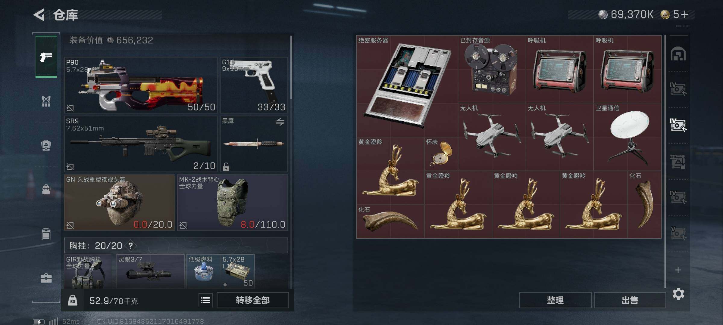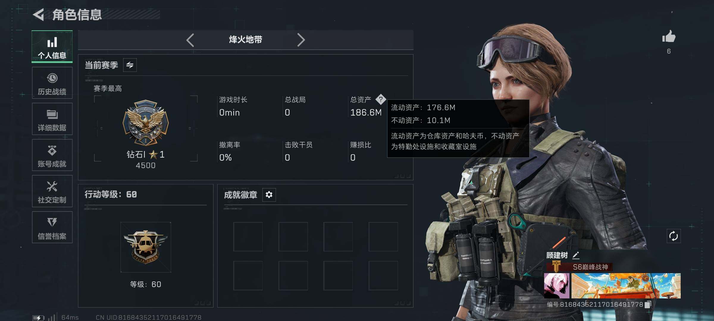 [15578028]【特价出售/店主推荐】186m总资产-69370k哈伏币-60烽火等级-钻石-1战场等级-无军衔