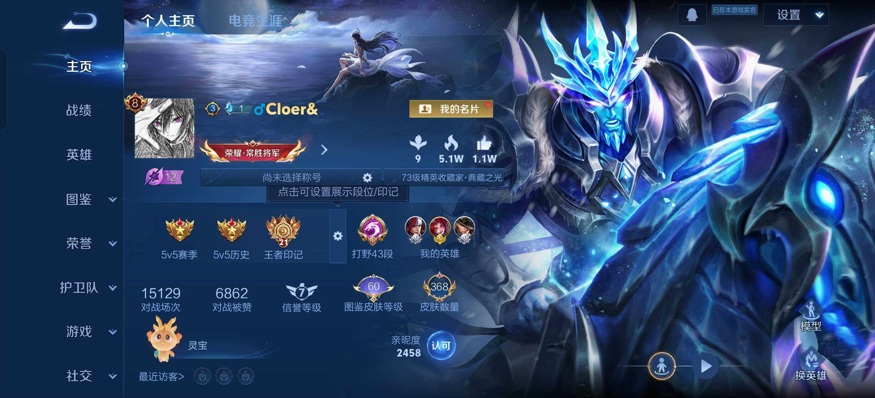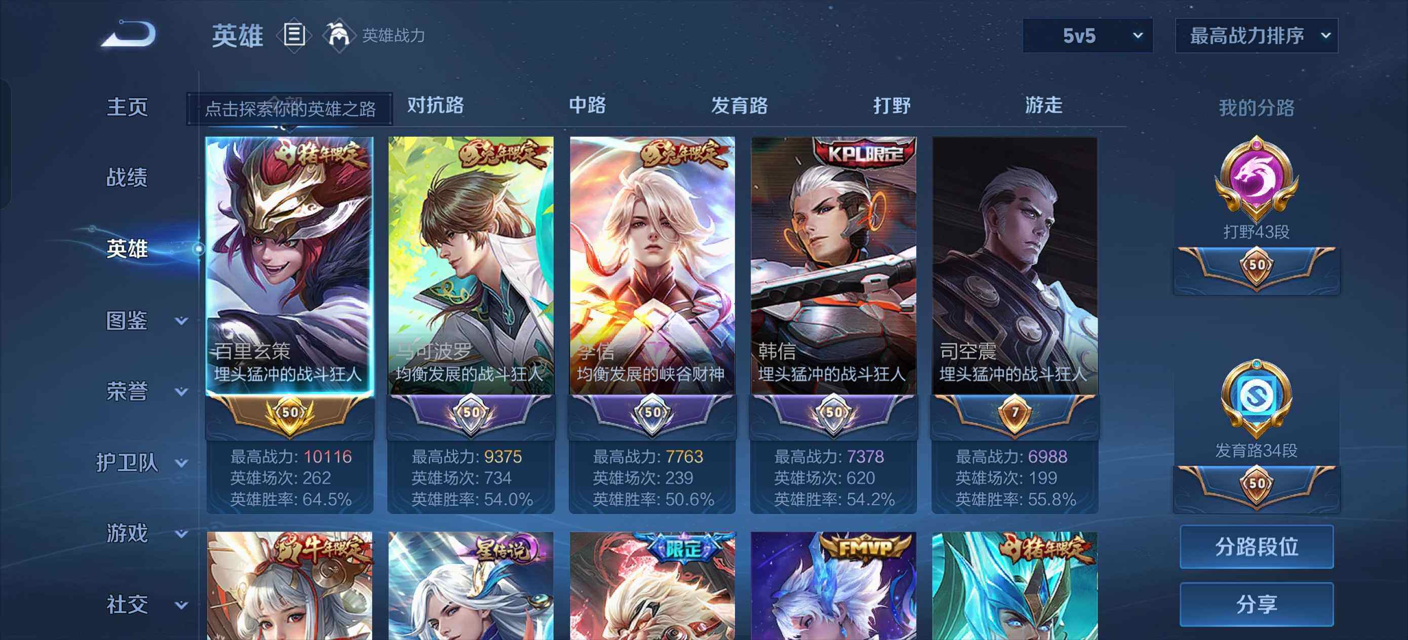 - PX_2112150-贵族等级: V4 英雄数: 122 皮肤数: 109 传说皮: 澜逐花归海,幻光神枪 限定皮: 李小龙,鸣野蒿,愿照·九州拓