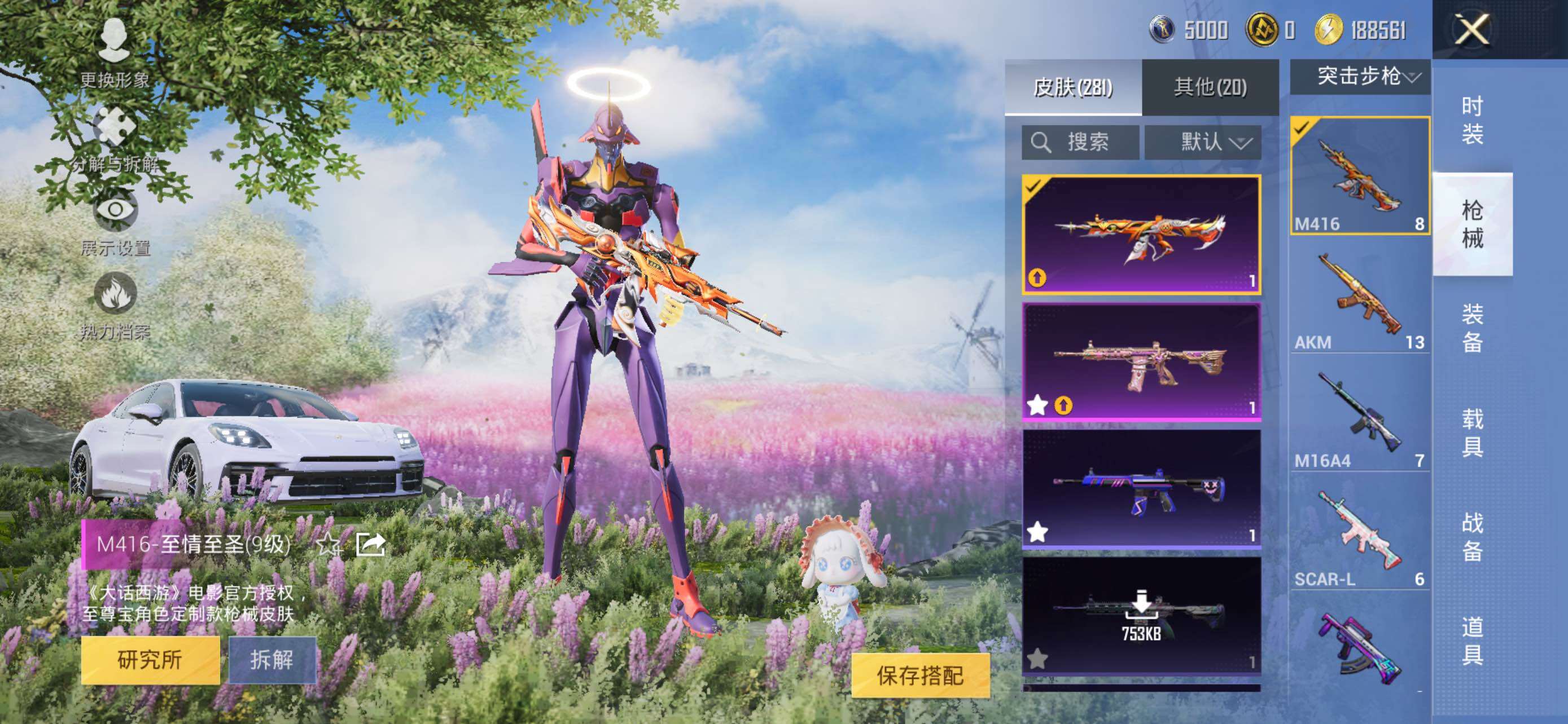 AKM-甜心宝贝,SCAR-L-锦绣绵绵,M416-心之恋语,M416-至情至圣,M416-墨龙九天,UMP45-量子极限,Kar98K-巳巳如意
