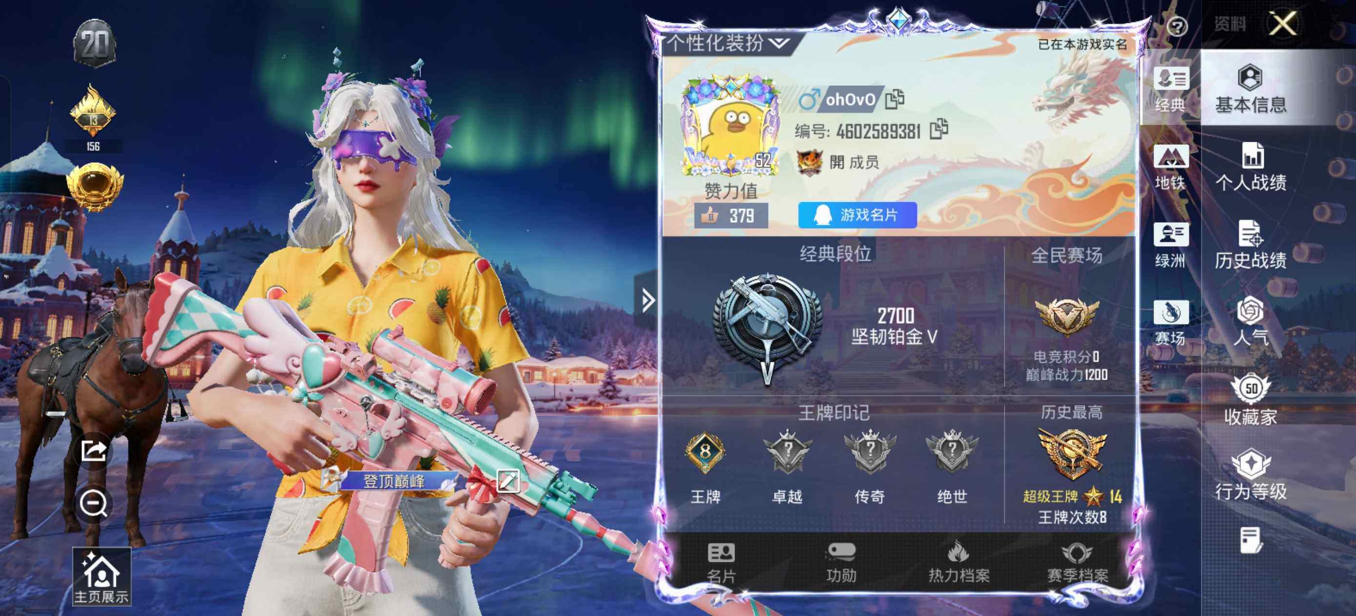 - [15386149]【特价出售/店主推荐】安卓 手Q-5粉装-2特效枪-1载具-1粉色飞行器-30775热力值-4王牌印记-85套装-97枪皮 【热门品类】:套装-龟仙人 【粉色套装】:粉装-雪月幻音,角色-凤凰座 一辉,角色-天鹅座 冰河,角色-天龙座 紫龙,粉装-幻彩电音 【粉色枪皮等级】:Kar98K-巳巳如意(五级),DP-28-豹影疾电(五级) 【粉色载具】:宝马M4(圣保罗黄) 【粉色枪皮】:Kar98K-巳巳如意,DP-28-豹影疾电 【粉色飞行器】:繁龙极客飞行器 【粉色降落伞】:激战未来降落伞,银刃赛罗降落伞,电糖天使降落伞,智耀战神降落伞,圣斗士星矢降落伞,星穹咏叹调降落伞 【稀有套装】:套装-龟仙人,套装-巳巳如意,套装-糖糖葫芦,套装-青团波波,套装-棉花软糖,角色-摩登魅猫,角色-俏兔智灵,套装-燕燕于飞,套装-鱼渊荷华,套装-粉恋花,套装-紫幽梦,套装-蓝冰羽,角色-瑰梦爱神,套装-星渊小夜曲,套装-极速光影,套装-彩虹兔,套装-云朵鹅,套装-雪绒豹 【稀有枪皮】:AKM-夜灯,AKM-破晓战魂,SCAR-L-炫彩节奏,M416-红色方程式,GROZA-治愈之星,AUG-耀粉歌者,AUG-月影灵韵,QBZ-彩虹符号,M762-天降萌叽,M762-云朵鹅,G36C-桃粉嫣然,AC-VAL-天降萌叽,蜜獾-天降萌叽,UZI-天降萌叽,UMP45-夜灯,UMP45-生命誓言,Vector-彩虹符号,Vector-治愈之星,Vector-香水柠檬,汤姆逊-银刃赛罗,P90-巳巳如意,Kar98K-彩虹符号,M24-治愈之星,AWM-激战未来,SKS-夜幕颂歌,SKS-炫彩节奏,Mini14-耀粉歌者,Mk14-治愈之星,SVD-云朵鹅,S686-生命誓言,S686-巳巳如意,S1897-荧海星豚,S12K-玩趣呆呆,S12K-破晓战魂,S12K-夜灯,S12K-智耀战神,DBS-彩虹符号,DBS-幻彩电音,SPAS-12-云朵鹅,M249-破晓战魂,DP-28-彩虹符号,MG3-幻世战舞者,沙漠之鹰-云朵鹅,大砍刀-云朵鹅,撬棍-冷漠罗丽,平底锅-圣斗士星矢,平底锅-辉羽雀灵,破片手榴弹-巳巳如意 【其他套装】:套装-SS14特训,套装-光之冒险,套装-冷焰舞者,套装-北国孤狼,套装-幻世战舞者,套装-幻影武者,套装-极速红龙,套装-柠萌假日,套装-海岛探路者,套