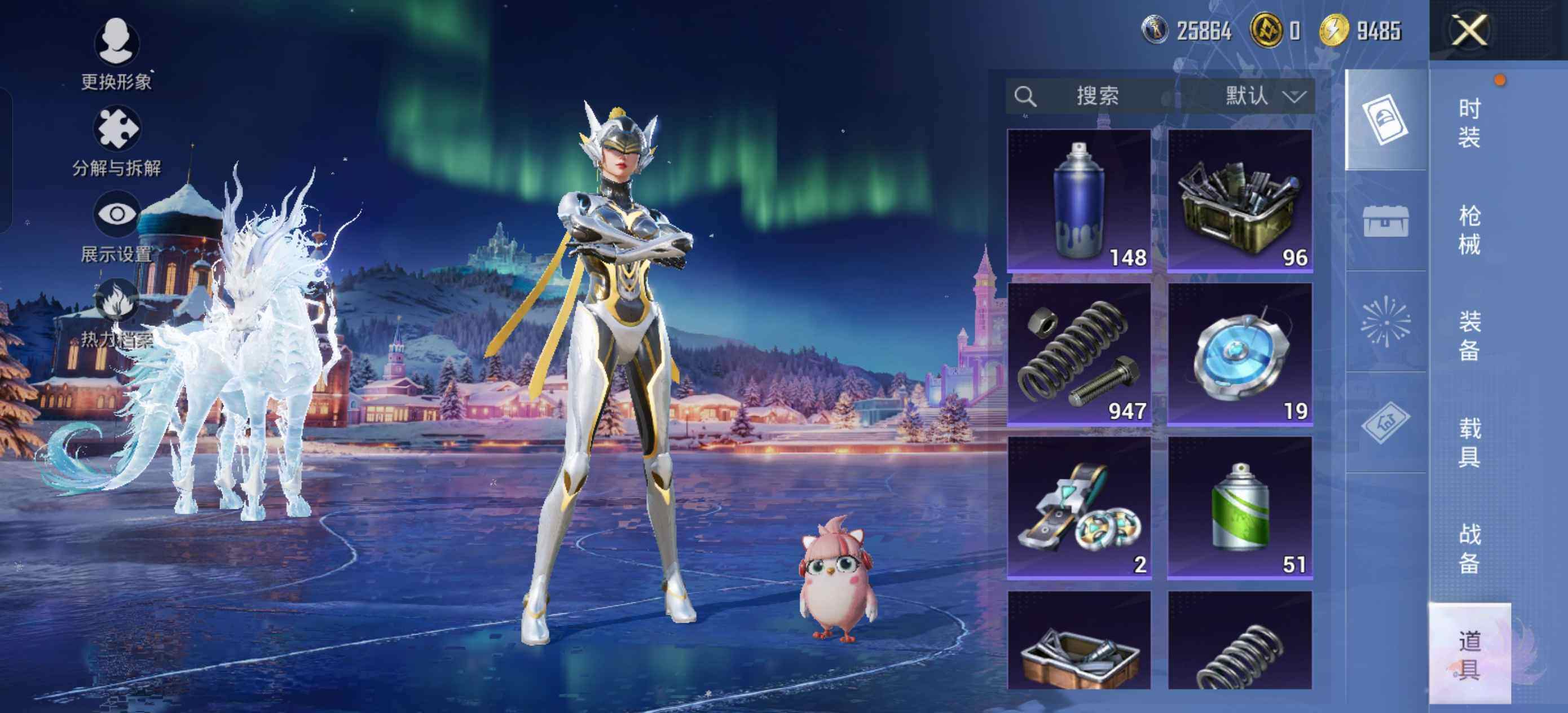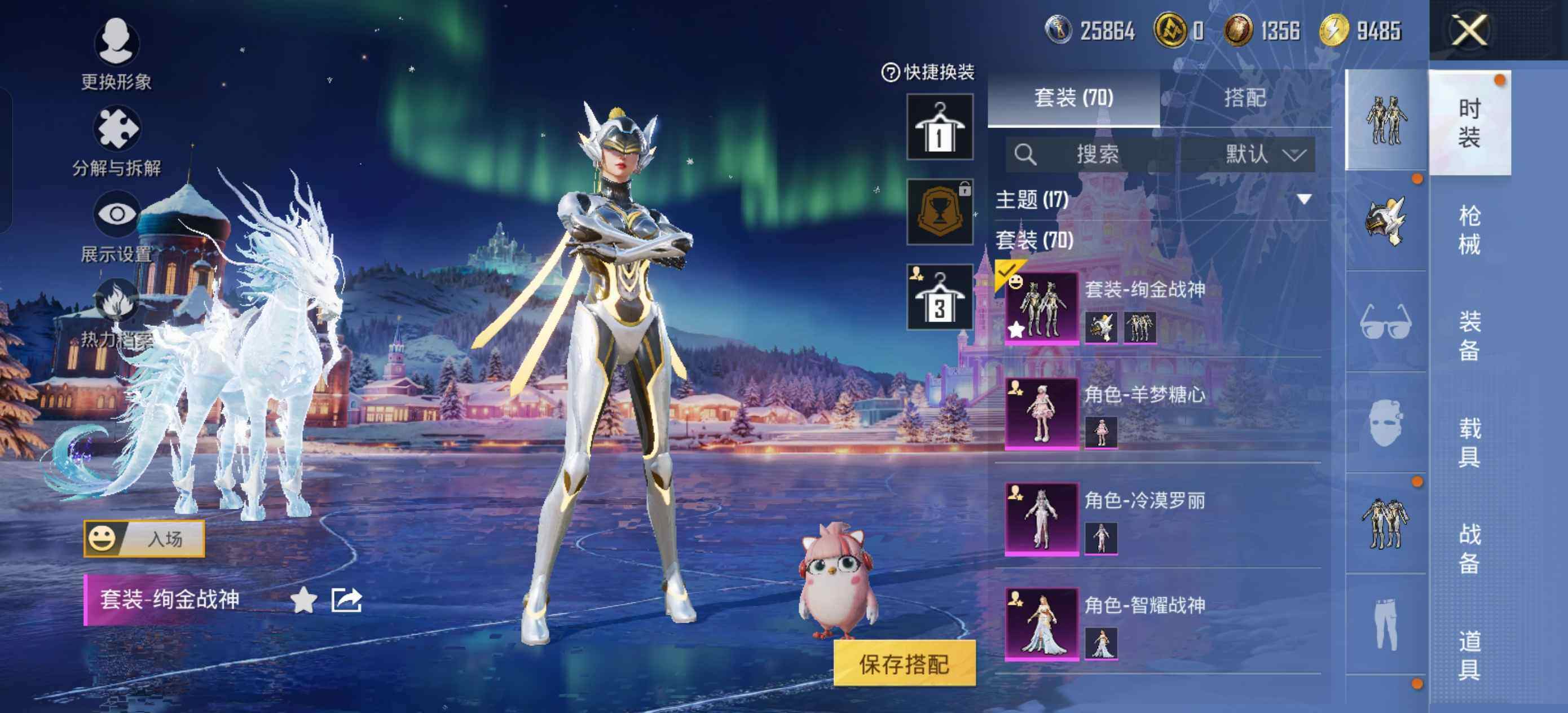 【粉色套装】:粉装-绚金战神,角色-智耀战神,角色-冷漠罗丽,角色-羊梦糖心