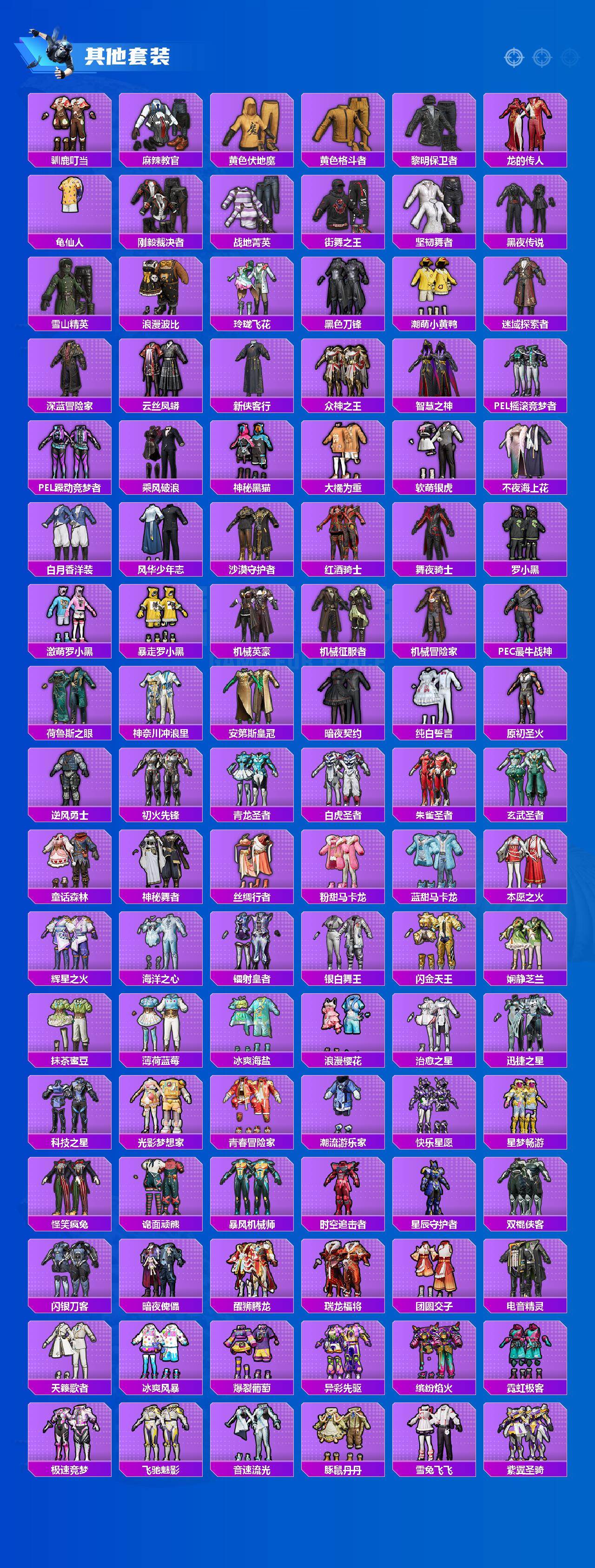 套装-梦幻火箭,套装-缤纷油彩,套装-胖达团团,套装-沙漠守护者,套装-潮萌小黄鸭,套装-浪漫波比,套装-深海曼妙,套装-蝶舞迷情,套装-金风玉露,套装-金属狂野,套装-静灵氛围,套装-智能音符,套装-放客神游,套装-PEL轰鸣竞梦者,套装-古堡领主,套装-天禅智恒,套装-彗云及圣,套装-狩月元帅,套装-琉璃脉冲,套装-新星烈龙,套装-向日葵,套装-甜蜜誓约,套装-心之恋语,套装-极致幻想,套装-星空之魅,套装-幻彩马卡龙,套装-香水柠檬,套装-星之彼岸,套装-烈焰拳霸,套装-葫芦兄弟,角色-洛天依,恐龙拽拽套装,套装-圣光天使,套装-妙趣可丽,套装-霓裳武神,套装-彩虹甜喵,套装-寒光使者,套装-黄族统领,角色-白勺歌姬,角色-呆萌星弥,角色-小可学妹,套装-玉鳞金羽,套装-未来歌姬,角色-猩猩队长,角色-圣堂之誓,角色-美雪,角色-美琪,套装-神秘黑猫,套装-大橘为重,套装-软萌银虎,套装-罗小黑,套装-暴走罗小黑,兔兔白日梦套装,套装-银碳小老虎