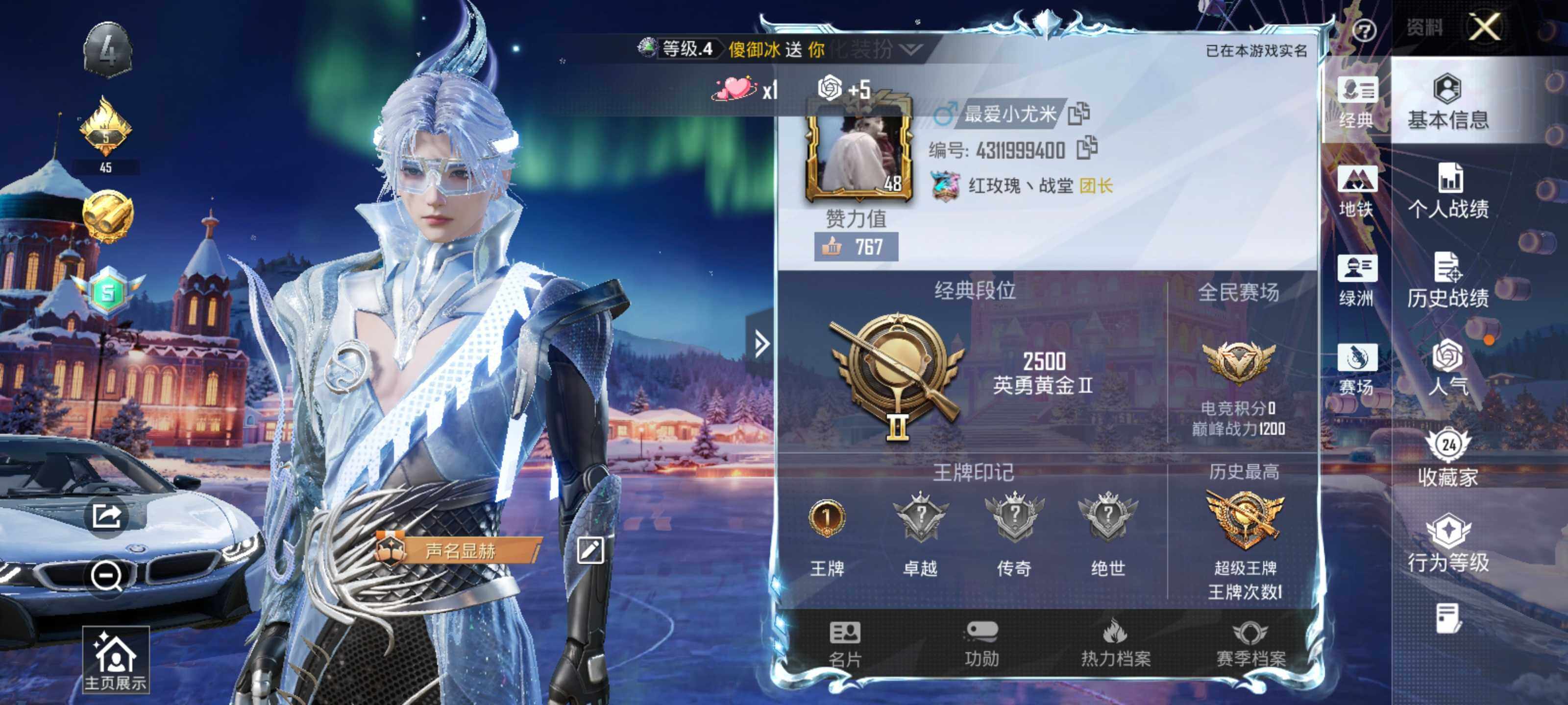- [15382744]5英雄角色数-227英雄武器数 【王者系列】:王者之心,王者之兽,王者之魂,王者幻神 【热门武器】:KSG-孟获,81式-光明之神,TAC-慈,COP 357-雷神,81式-阿波罗,CZS2-仲康 【角色】:葵,樱*2,瞳,零-新生 【英雄武器】:AK47-火麒麟,AK47-猩红传说,AK47-雷麒麟,AK47-血武士,AK47-黑鲨*2,AK47-木兰,AK47-塔罗牌觉醒,AK47-谜城烟火*2,M4A1-雷神*2,M4A1-玫瑰精灵*2,M4A1-龙血,M4A1-运输船*2,M4A1-猎神,M4A1-夏清,M4A1-千变,M4A1-太白诗仙,M4A1-铁胆虎魄,SCAR Light-白虎,SCAR-探星者,SCAR-心动PICK,AN94-四凶觉醒*2,AN94-赳赳秦师,9A91-游骑兵,9A91-魔蜥觉醒,M14EBR-天神,M14EBR-葫芦山庄*2,M16-恶魔,QBZ03-金色蔷薇*2,QBZ03-死神*2,HK416-极光,HK417-炎龙铠甲,81式-光明之神,G3A3-衍神兵,QBZ97-浩瀚征途,QBZ191-封神榜,AWM-天龙,AWM-裁决,AWM-指南针,巴雷特-毁灭*5,巴雷特-极光*5,巴雷特-冬灭觉醒,09式狙-天神,98K-星神,TAC-慈,TAC-晴舞,加特林-堡垒*3,加特林-堡垒觉醒,刘易斯-天使,QBB95-极光,双持斯泰尔-天使*4,斯泰尔-蝴蝶,QCW05-变形金刚·大黄蜂,CZS2-血月,CZS2-仲康,M12S-天公,PP19野牛-造纸术,DDM4-PDW-星际宇航觉醒,地狱火,地狱烈炎,AA12-火药,KSG-孟获,KSG-钟馗觉醒,USP-神罚*3,USP-机械迷城*2,USP-太白诗仙,沙鹰-修罗*4,沙鹰-神兵修罗*2,蚩尤战弓觉醒,蟒蛇-火力竞放觉醒,蟒蛇-鼓龙,左轮-卧龙觉醒,双持GLOCK18-本初,COP 357-雷神,QSZ92-华夏传说*2,柯尔特-仲达,柯尔特-伏刹山海觉醒,CZ75-穷奇,MK23-幻神,掠夺者P365-虹舞,蝴蝶刀-天神,女皇利刃-铁胆虎魄*2,炽芒蝶刃*2,清刚-觉醒,匕首-浩瀚征途,龙啸,神罚战斧*2,手斧-机械迷城*3,秋逸觉醒*2,气勇胆烈戟,屠龙*7,尼泊尔-铜头铁臂,龙鳞-觉醒,星芒,马来剑-毁灭*4,唐刀-华夏传说,唐刀-大唐荣耀,末日裁决觉醒*3,破邪蛇