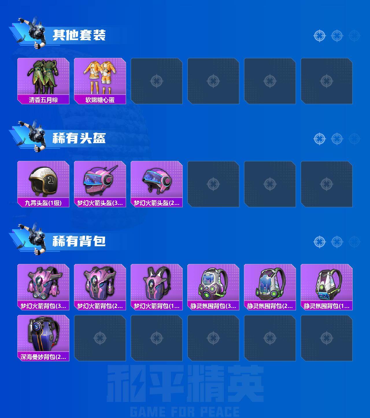 【稀有背包】:梦幻火箭背包(3级),梦幻火箭背包(2级),梦幻火箭背包(1级),静灵氛围潮音背包(3级),静灵氛围潮音背包(2级),静灵氛围潮音背包(1级),深海曼妙背包(2级)