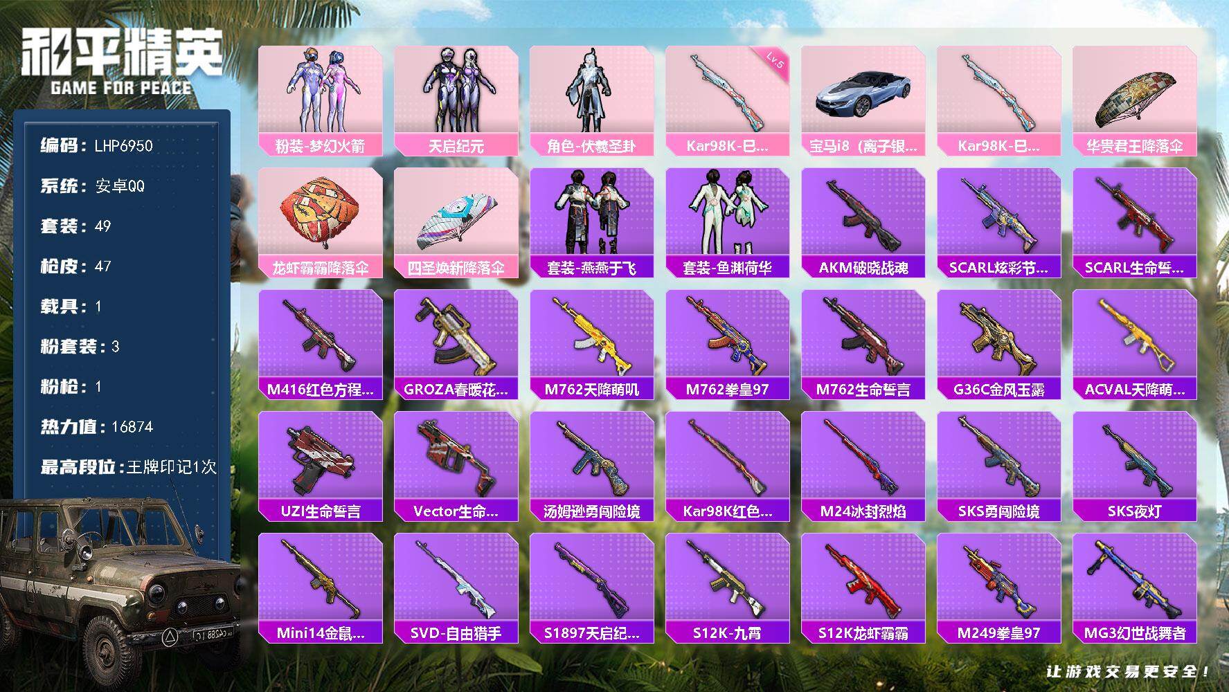 [15579786]【特价出售/店主推荐】安卓 手Q-3粉装-1特效枪-1载具--1.6w热力值-1王牌印记-49套装-47枪皮