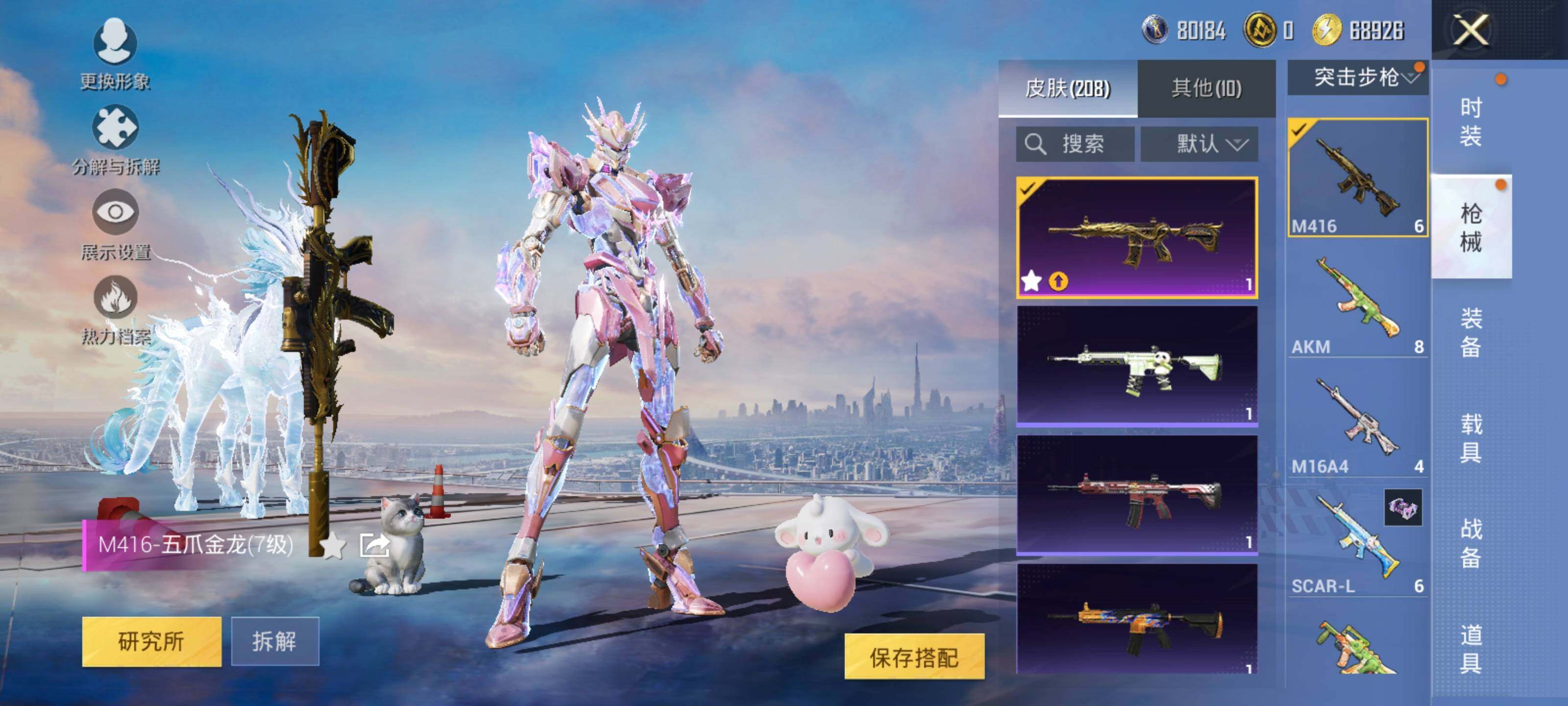 【粉色枪皮】:M416-五爪金龙,Vector-最终圣卫者,Kar98K-巳巳如意,DP-28-圣堂之誓,DP-28-豹影疾电,平底锅-仲夏莫吉托