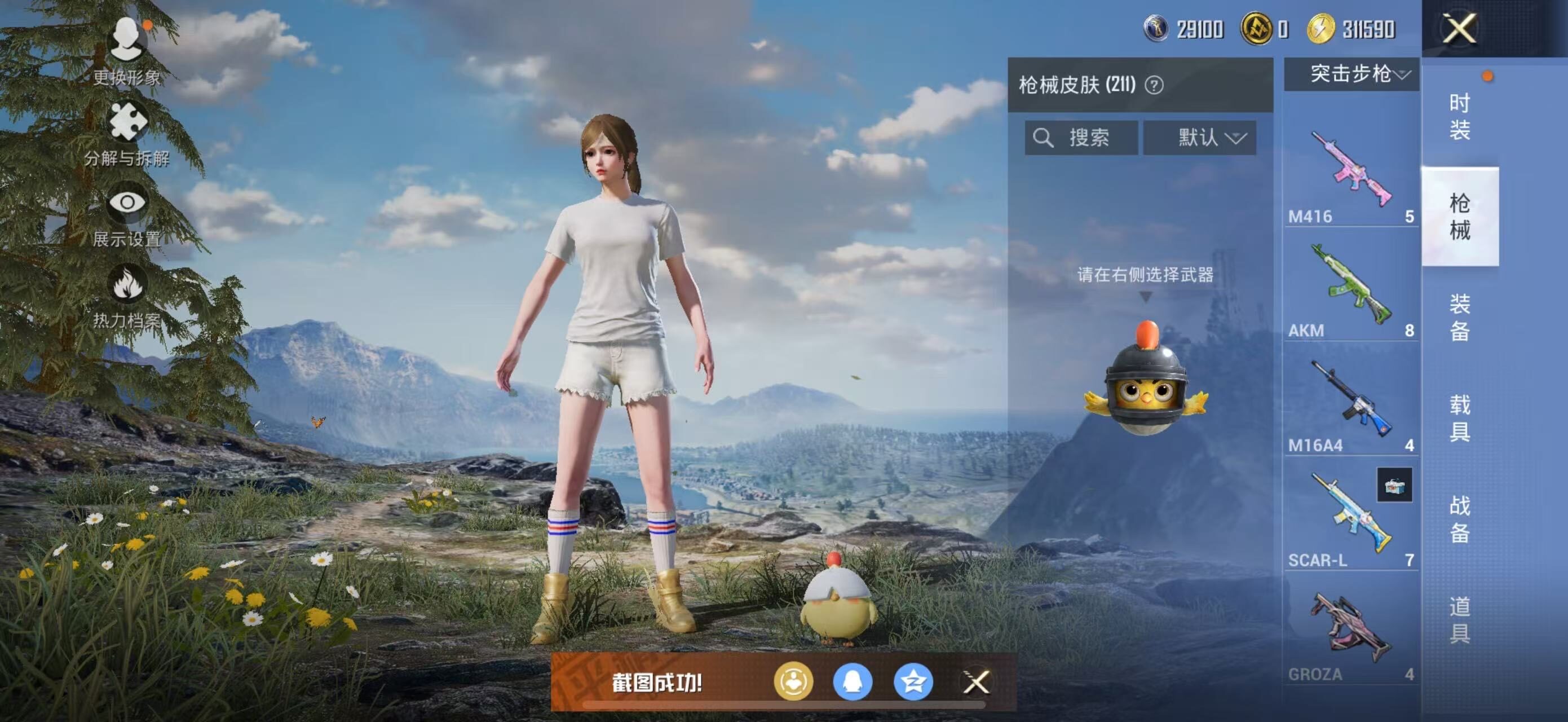 【粉色枪皮】:M416-电玩时刻,GROZA-镜光银凌,AUG-暖羊咩咩,M762-青锋波束,UMP45-量子极限,汤姆逊-热量炸弹,Kar98K-巳巳如意,Mk14-甜梦熊击,DP-28-豹影疾电