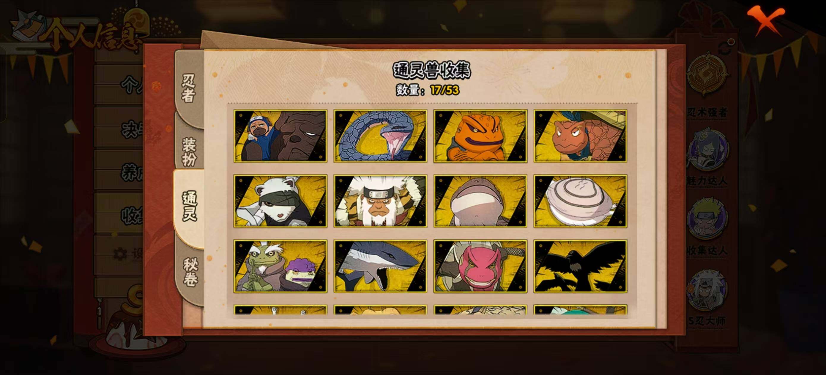 【A级忍者】:艾「青年」(2星),长门「青年」(2星),波风水门「青年」(2星),达鲁伊「博人传」(2星),迪达拉(2星),迪达拉「秽土转生」(3星),大蛇丸「晓」(2星),奇拉比(2星),奇拉比「忍界大战」(2星),飞段(5星),飞段「死司凭血」(2星),干柿鬼鲛(5星),漩涡博人「桃式显现」(2星),漩涡鸣人「仙人模式」(2星),漩涡鸣人「九尾查克拉」(2星),迈特凯(5星),旗木卡卡西「万花筒写轮眼」(2星),旗木卡卡西「幻之真容」(2星),桃地再不斩「秽土转生」(2星),我爱罗「疾风传」(4星),我爱罗「忍界大战」(2星),蝎(5星),蝎「绯流琥」(2星),小南(2星),角都「地怨虞」(2星),猿飞阿斯玛(5星),宇智波止水(2星),宇智波止水「新春限定」(2星),宇智波鼬(2星),宇智波佐助「须佐能乎」(2星),宇智波佐助「万花筒写轮眼」(2星),药师兜「半蛇斗篷」(3星),药师兜「侠影江湖」(2星),照美冥「五代目水影」(2星),日向宁次「忍界大战」(2星),日向雏田「最终章」(2星),长十郎「六代目水影」(2星),李洛克「忍界大战」(2星),猿飞木叶丸「博人传」(2星),黑土「博人传」(2星),千手扉间「漂泊武士」(2星),春野樱「百豪」(2星),秋道丁次「忍界大战」(2星),千代「近松十人卫」(2星),不缘(2星),宇智波泉奈(2星)